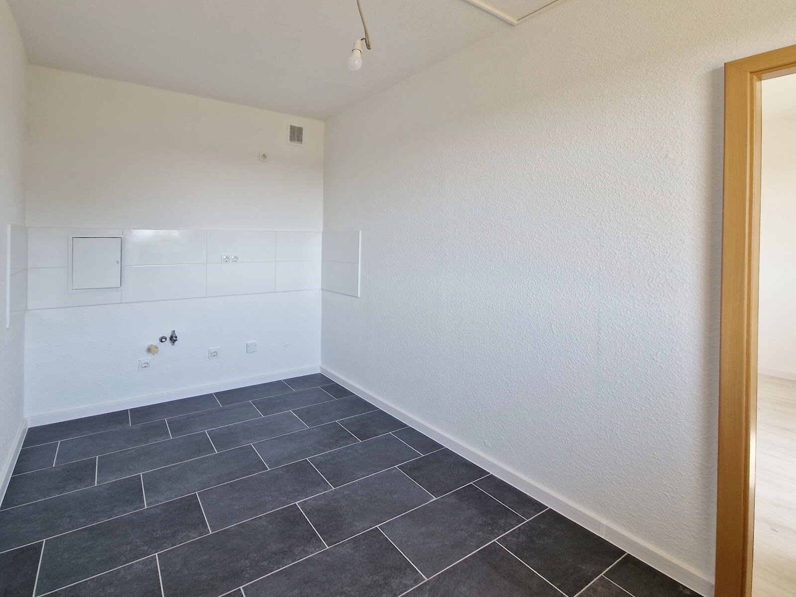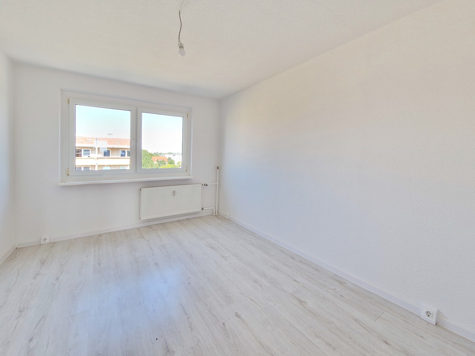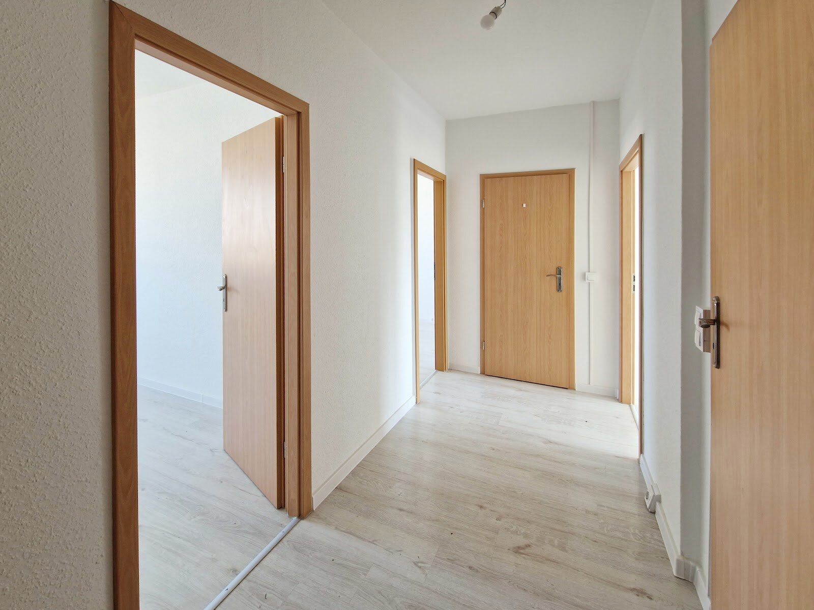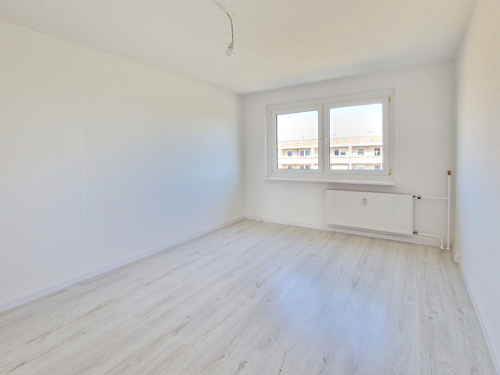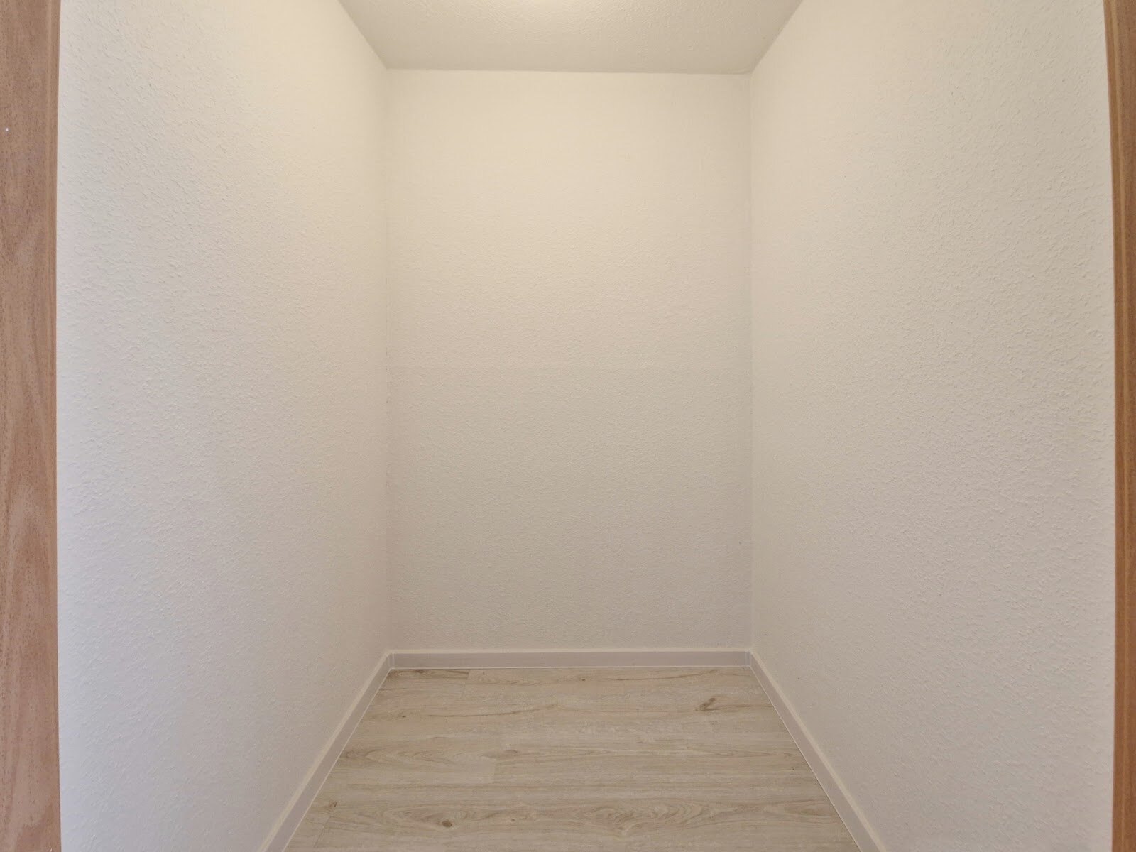 - Wohnbereich mit Laminat-Boden und Raufasertapete – schlicht, pflegeleicht, bereit für Ihre Einrichtungsideen
