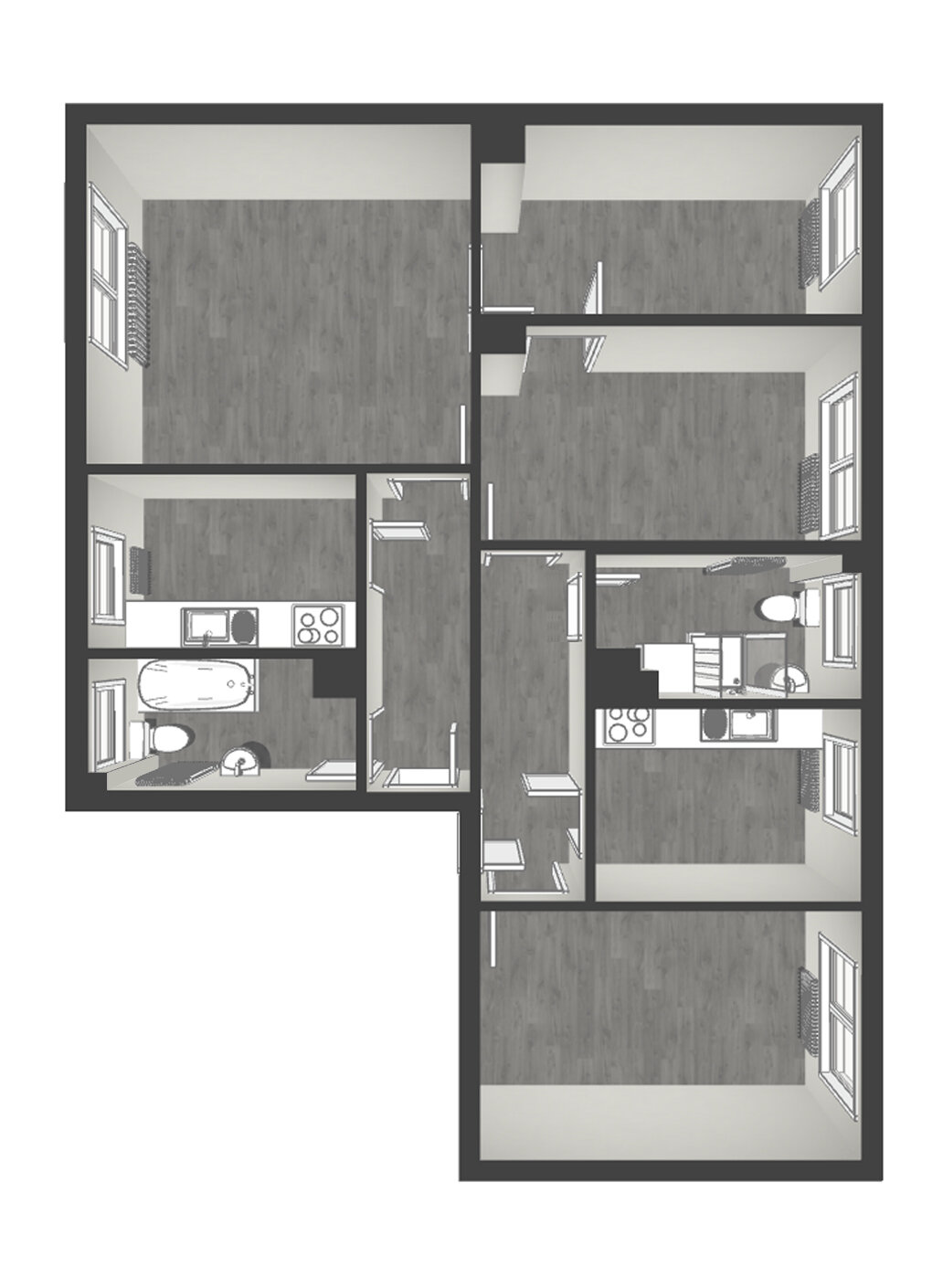 Die 5-Zimmer-Wohnung verteilt sich auf ca. 100 m²