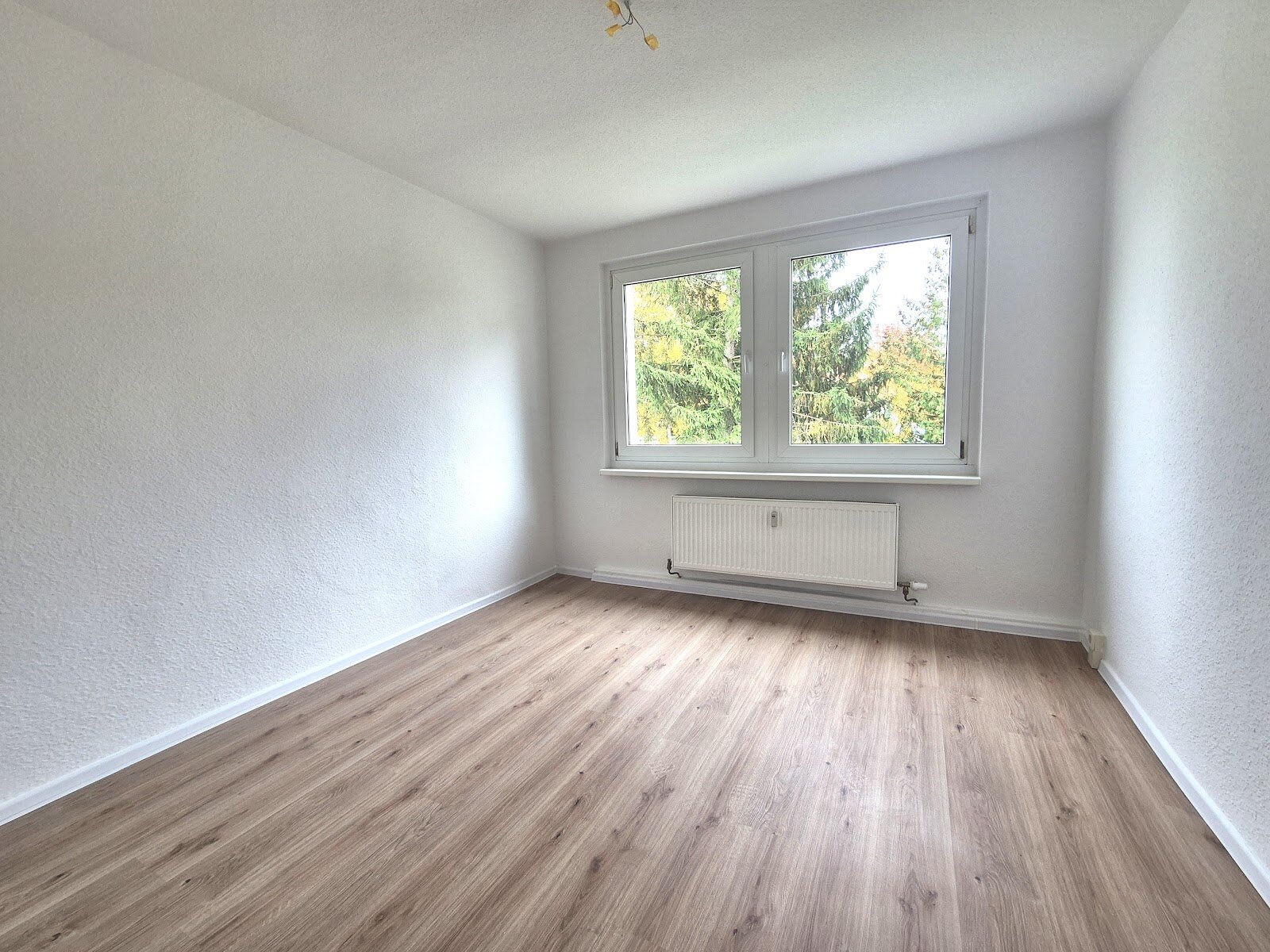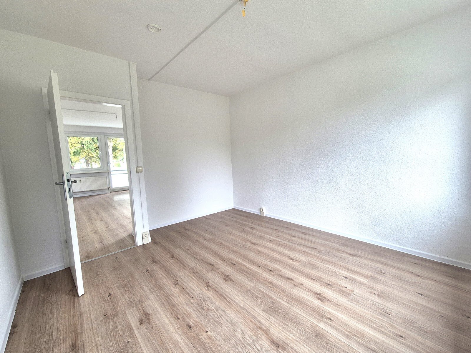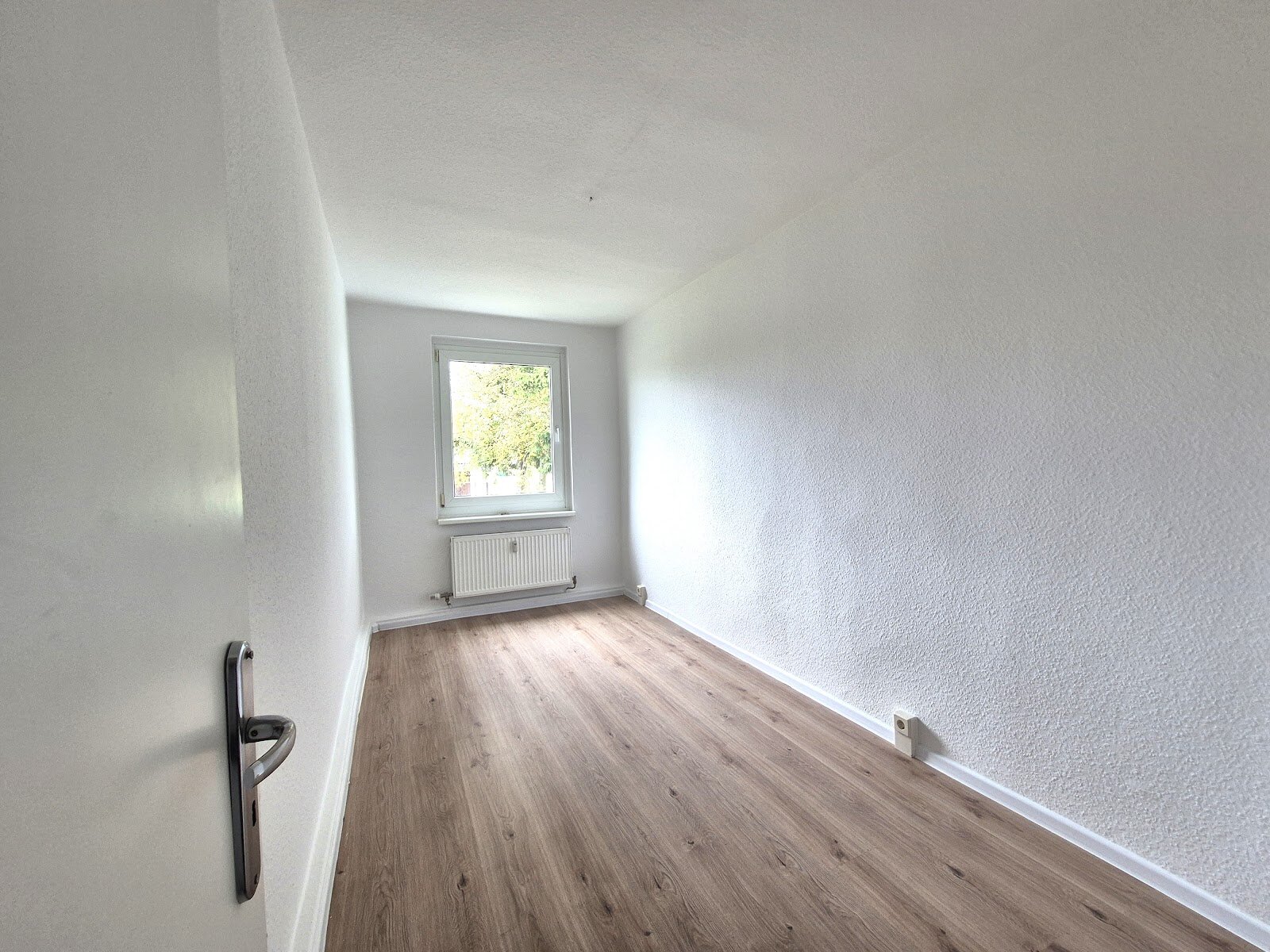 - Laminat Bodenbelag und Raufasertapete in den Wohnräumen
