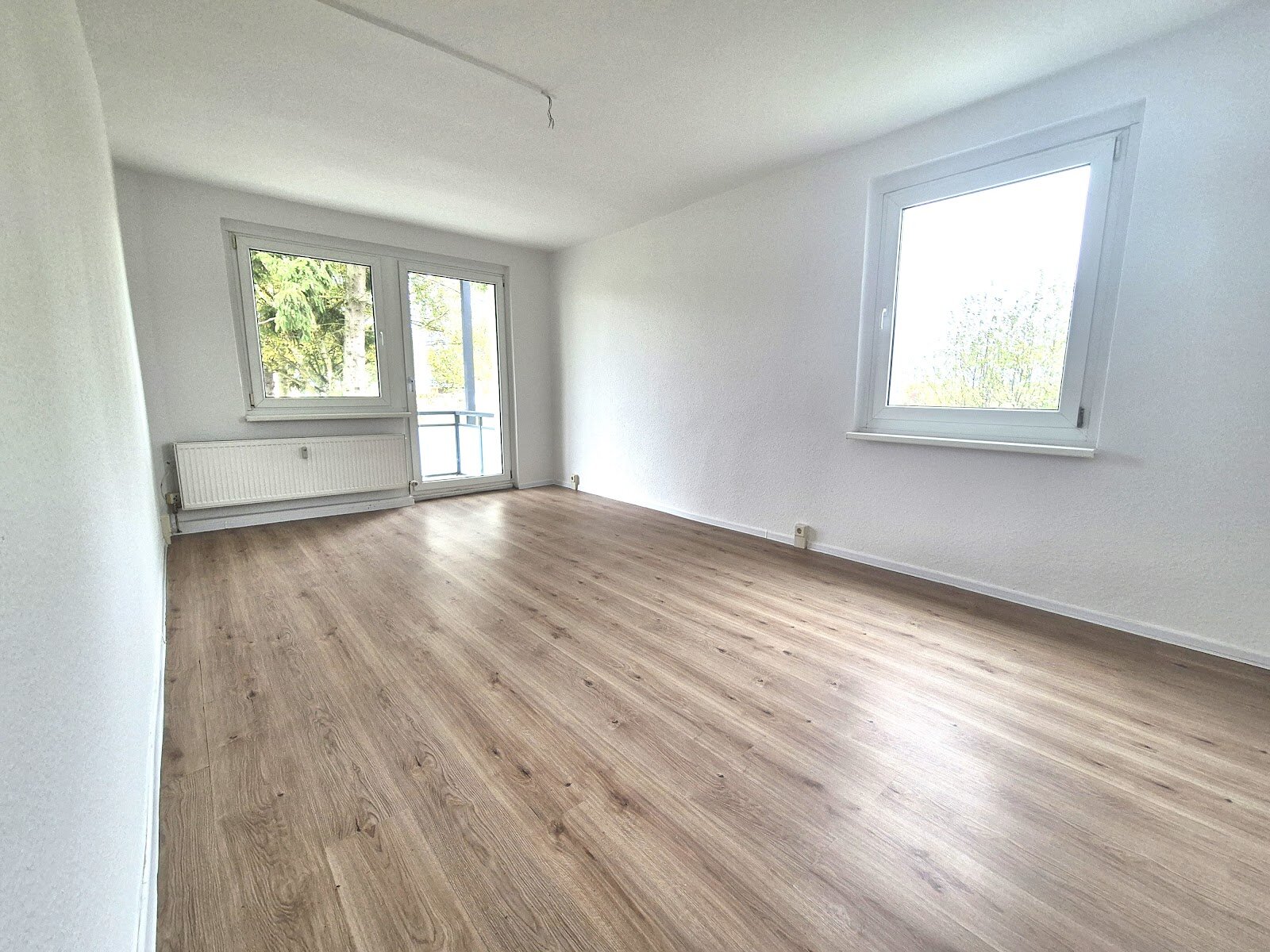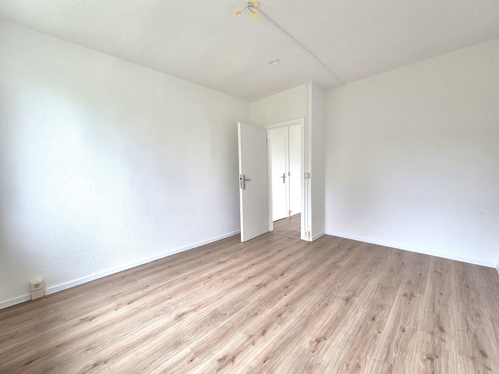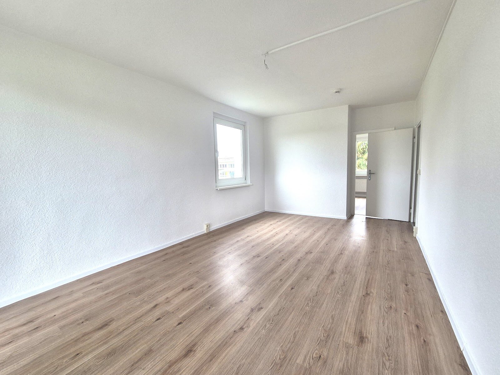 - Laminat Bodenbelag und Raufasertapete in den Wohnräumen