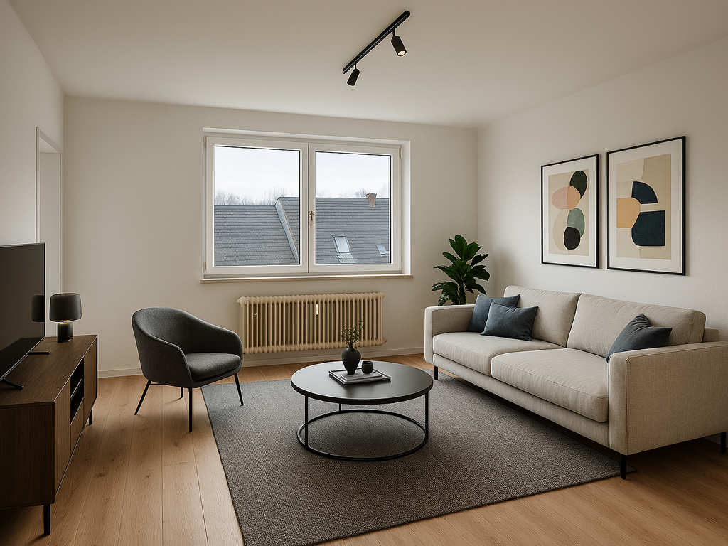 - Die in der Anzeige verwendeten Fotos können Beispielfotos oder KI-generierte Visualisierungen (Kennzeichnung mit „virtually staged“) sein, die der besseren Veranschaulichung der Immobilie dienen und von den tatsächlichen Gegebenheiten abweichen können.