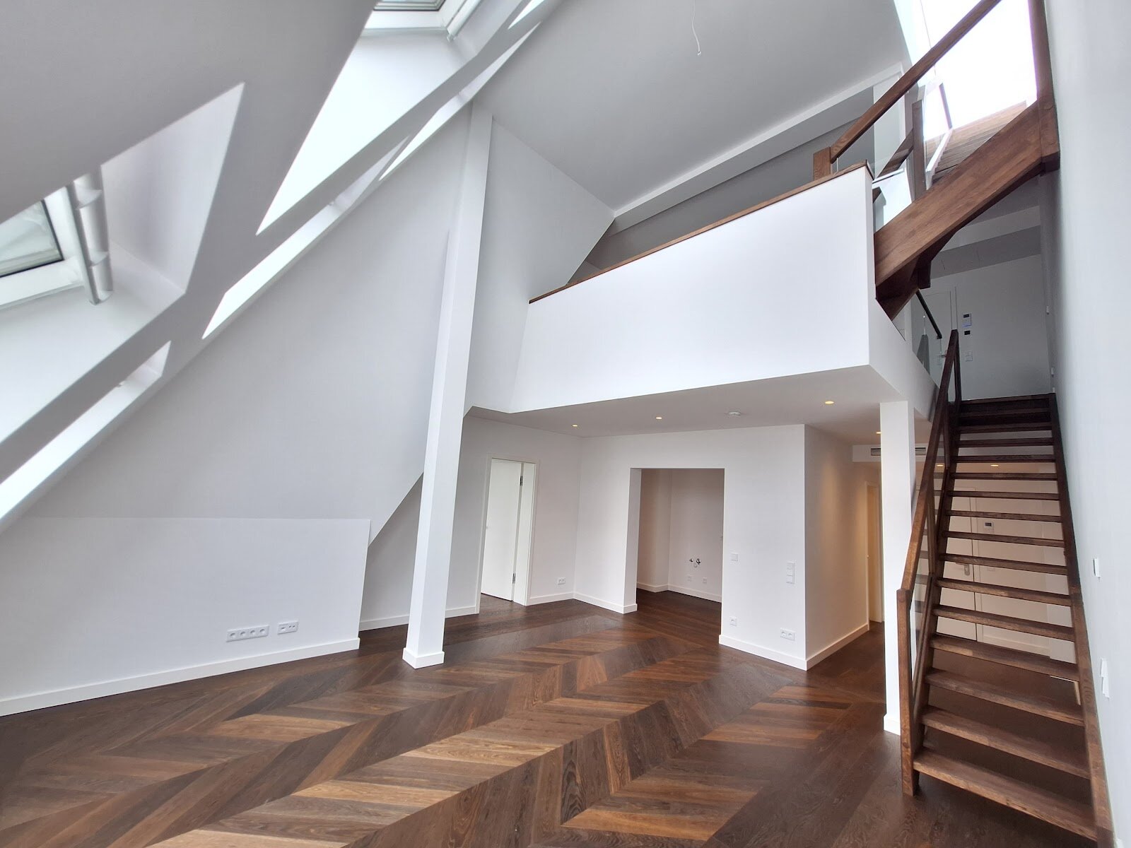 Die bezugsfertigen Wohnungen verteilen sich jeweils über zwei Ebenen und bieten großzügige Grundrisse, viel Tageslicht und ein erstklassiges Wohnambiente. Einige Einheiten verfügen über private Dachterrassen mit beeindruckendem Panoramablick über Berlin, andere über großzügige Balkone, die zur ruhigen Hofseite ausgerichtet sind.