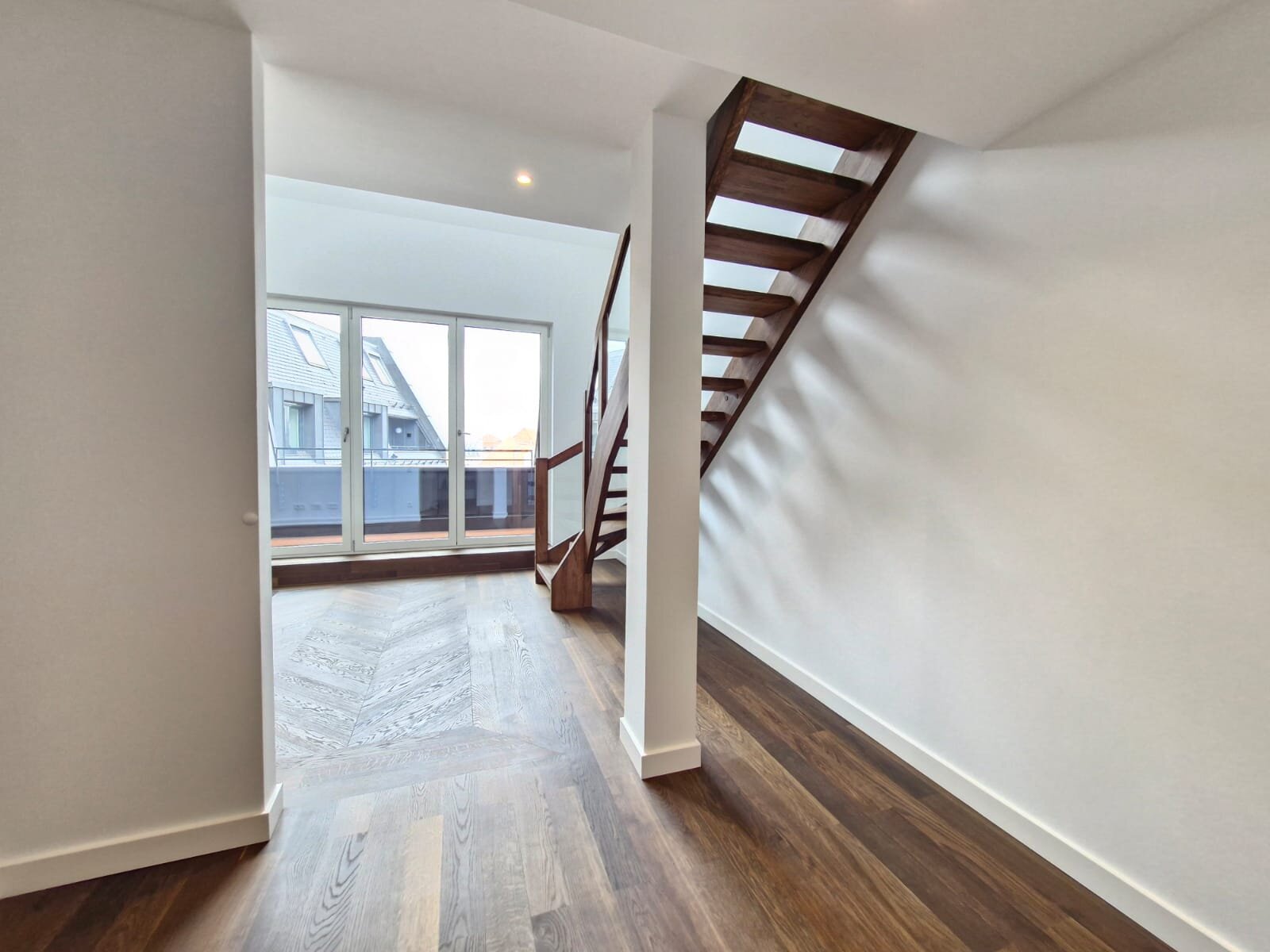 Die bezugsfertigen Wohnungen verteilen sich jeweils über zwei Ebenen und bieten großzügige Grundrisse, viel Tageslicht und ein erstklassiges Wohnambiente. Einige Einheiten verfügen über private Dachterrassen mit beeindruckendem Panoramablick über Berlin, andere über großzügige Balkone, die zur ruhigen Hofseite ausgerichtet sind.