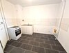 - Anthrazite Boden- und weiße Wandfliesen in der Küche