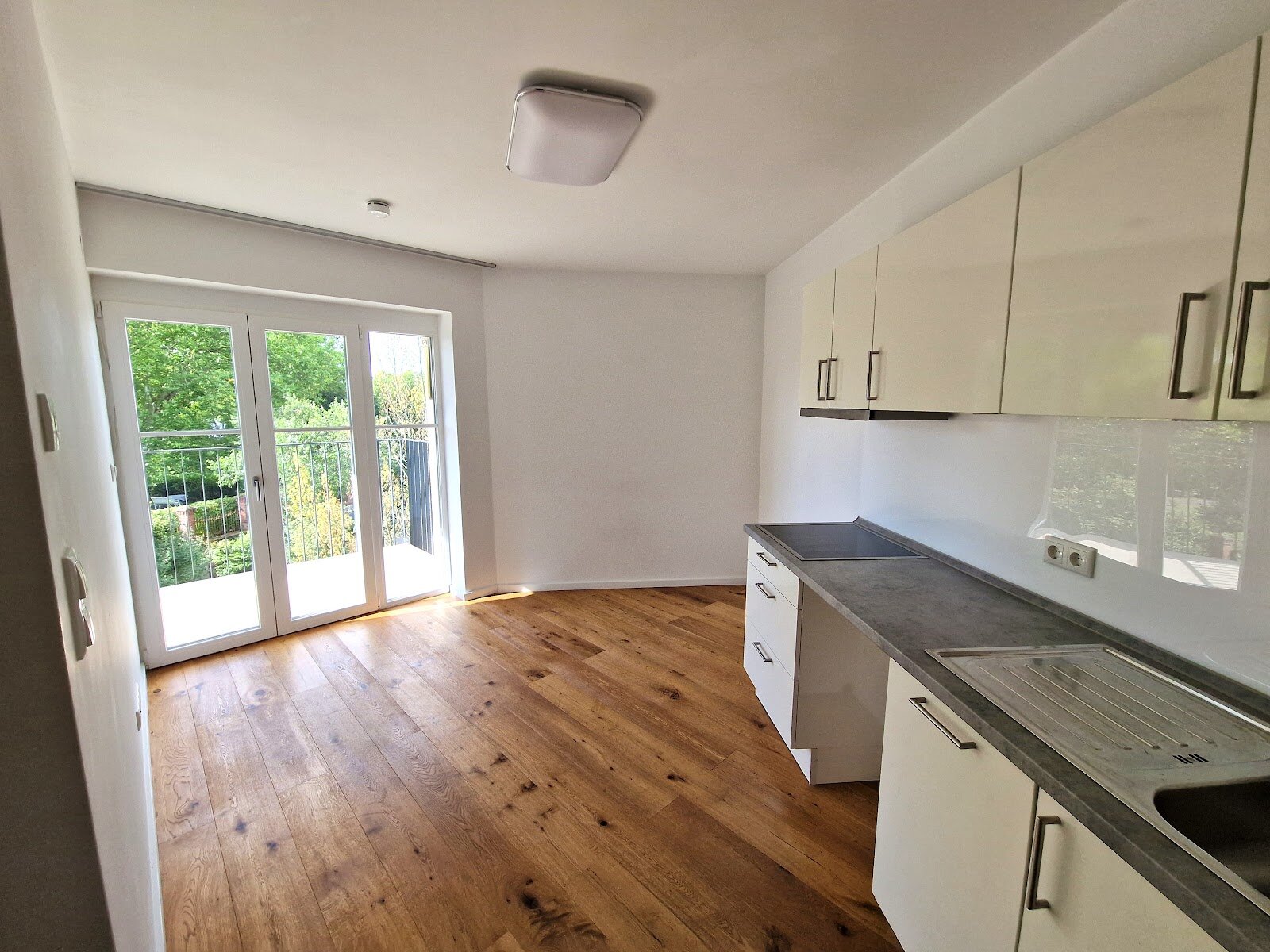 - Echtholz-Boden und gespachtelte Wände in den Wohnräumen