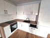 - Echtholzboden und weiße Wandfliesen in der Wohnküche