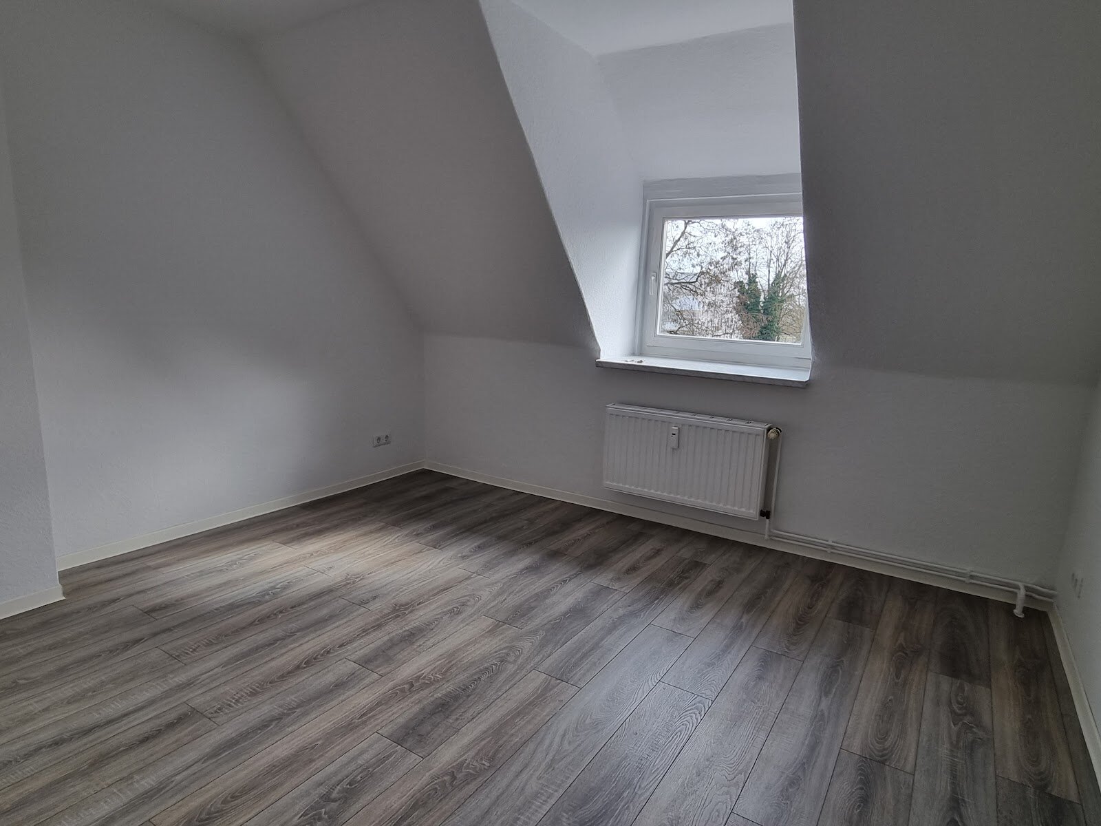 - Laminat/PVC- Bodenbelag und Raufasertapete in den Wohnräumen