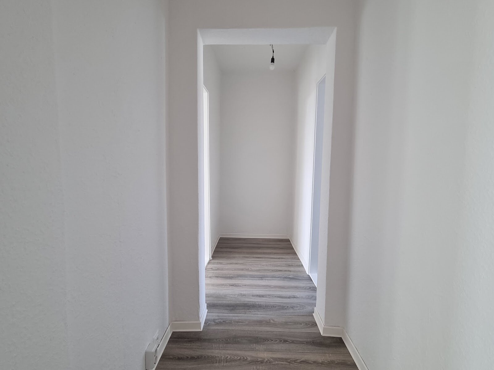- Laminat - Bodenbelag und Raufasertapete in den Wohnräumen