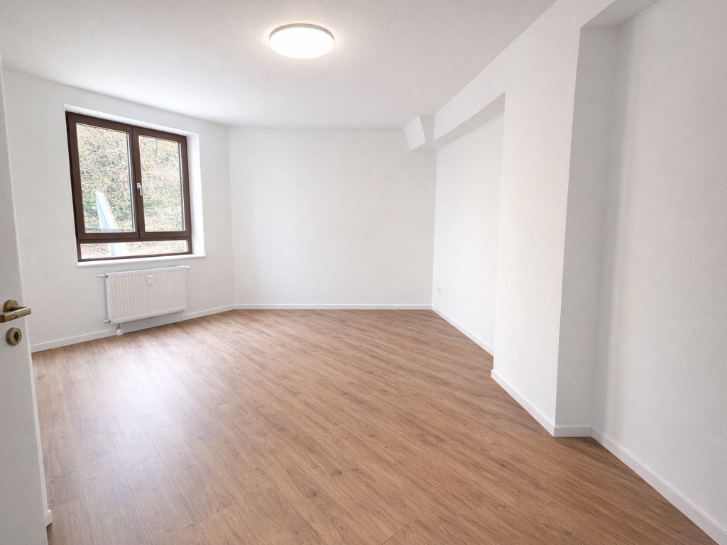 -Laminatboden und Raufasertapete in den Wohnräumen