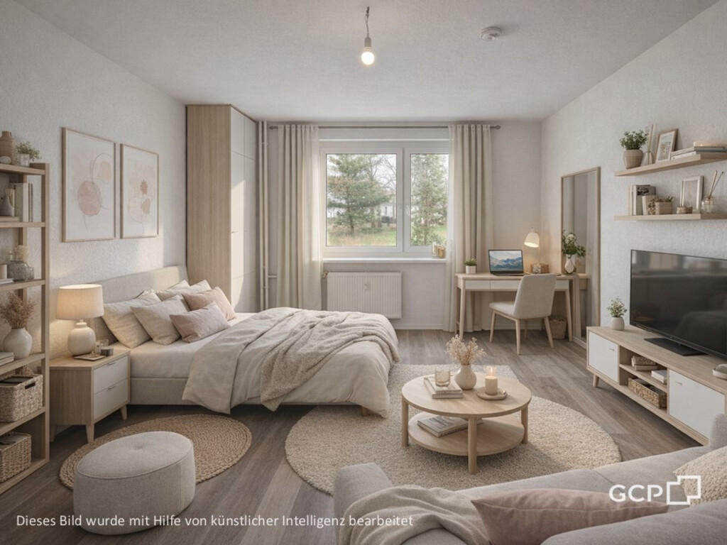 Da die Wohnung aktuell renoviert wird, wurden visualisierte Bilder/Musterbilder einer ähnlichen Wohnung verwendet, welche vom Endergebnis abweichen. Überzeugt euch bei einer Besichtigung vor Ort von der Wohnung!