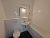 - Anthrazite Boden- und weiße Wandfliesen im Bad
