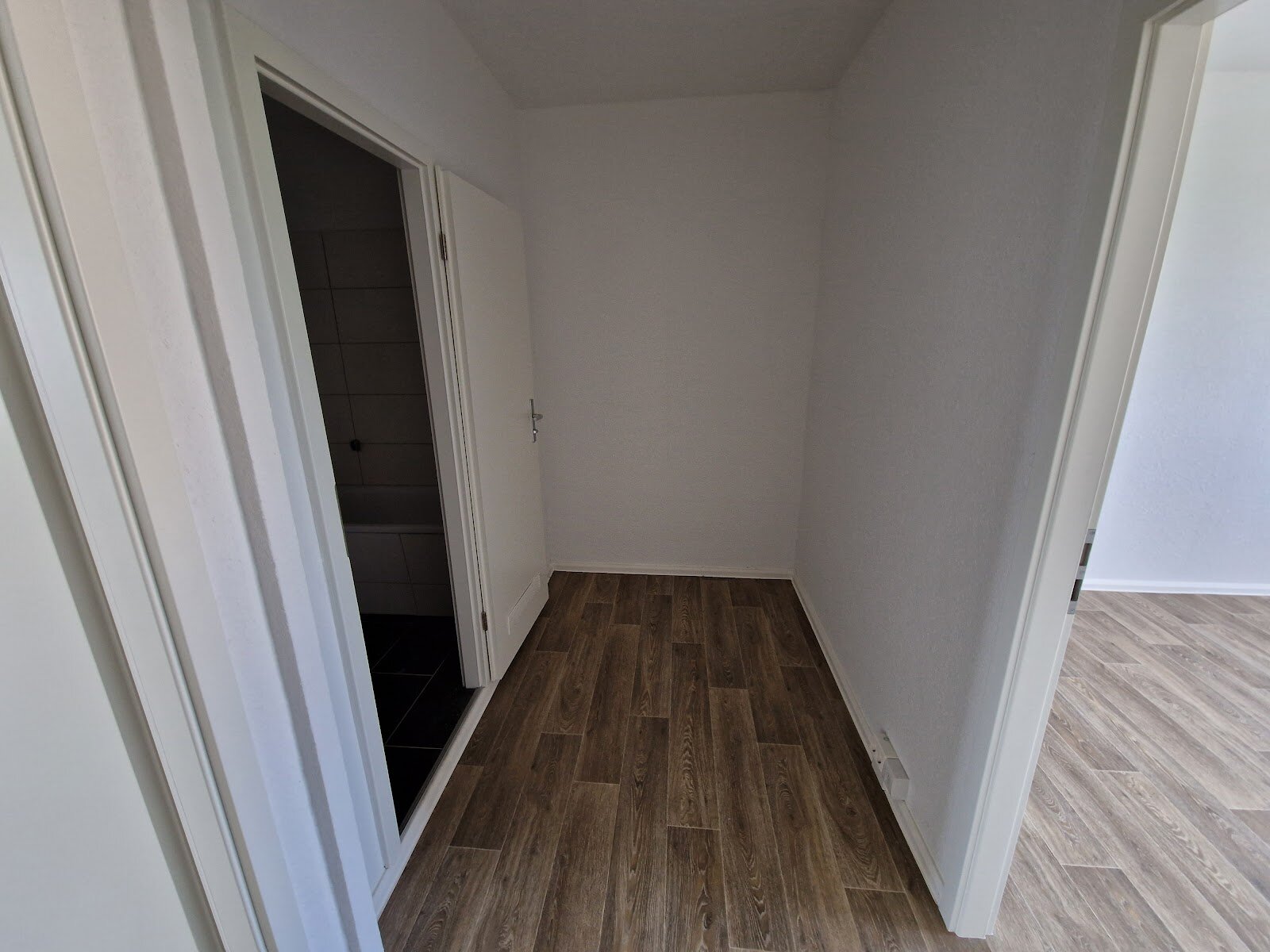 - Laminat- Bodenbelag und Raufasertapete in den Wohnräumen