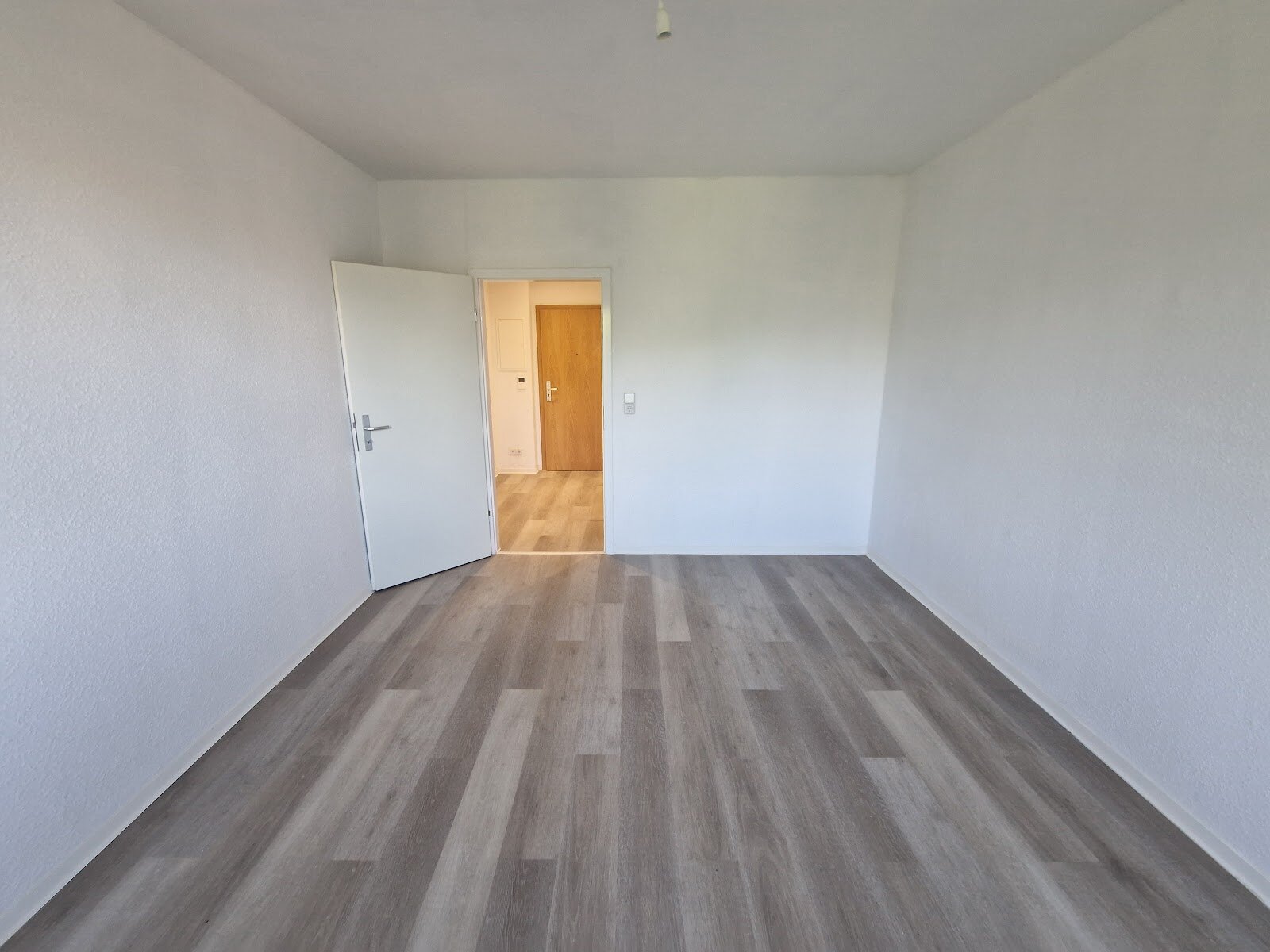 - Laminat- Bodenbelag und Raufasertapete in den Wohnräumen