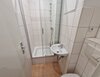 - Anthrazite Boden- und weiße Wandfliesen im Bad