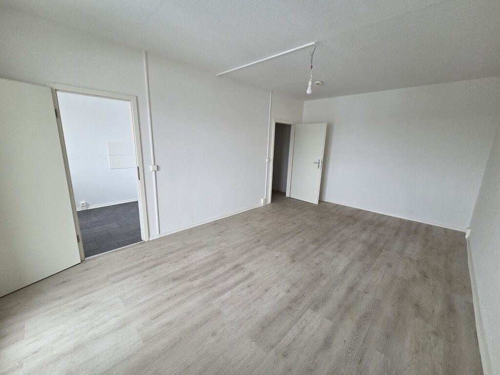 - Laminat- Bodenbelag und Raufasertapete in den Wohnräumen