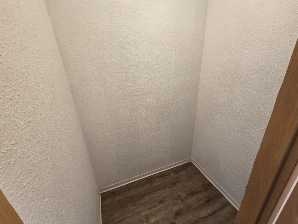 - Laminat- Bodenbelag und Raufasertapete in den Wohnräumen