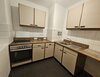 - Anthrazite Boden- und weiße Wandfliesen in der Küche