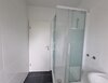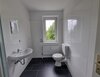 - Anthrazite Boden- und weiße Wandfliesen im Bad