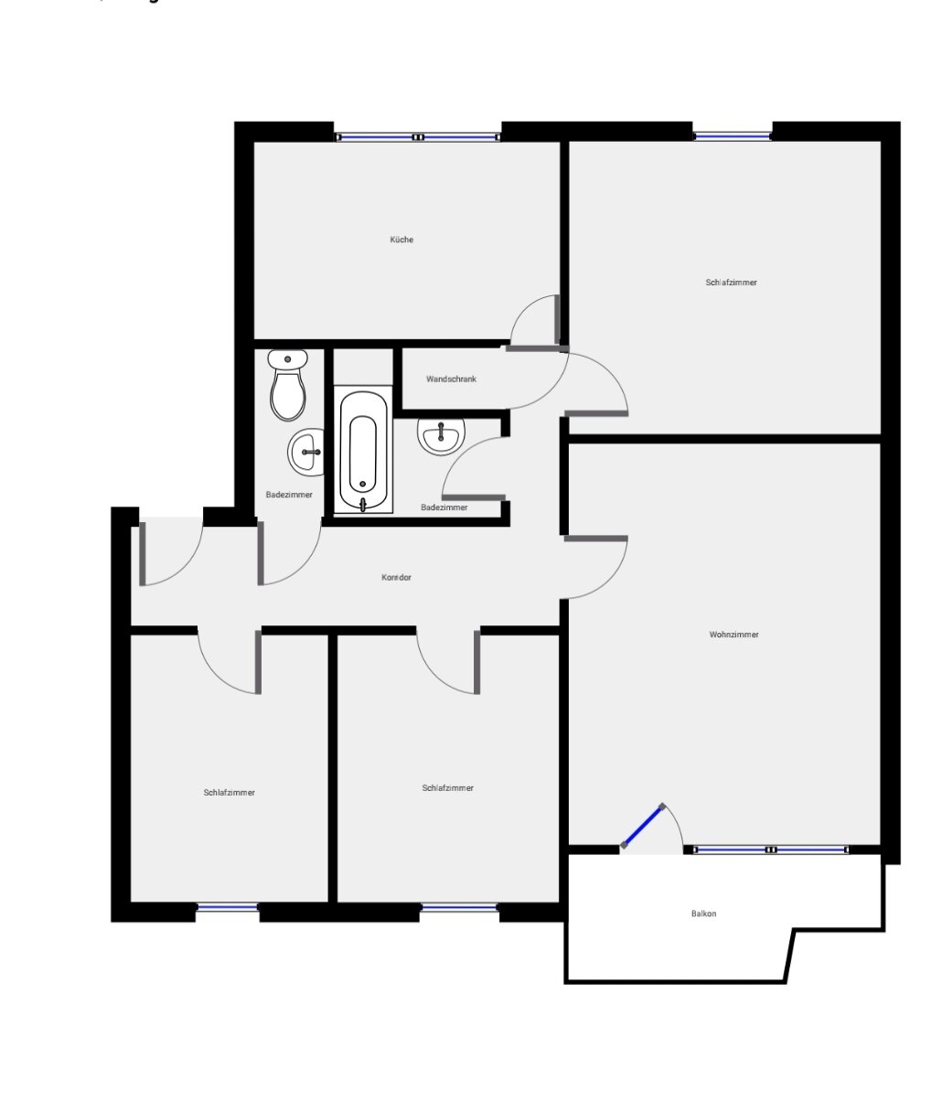Die 4-Zimmer-Wohnung verteilt sich auf ca. 80 m²