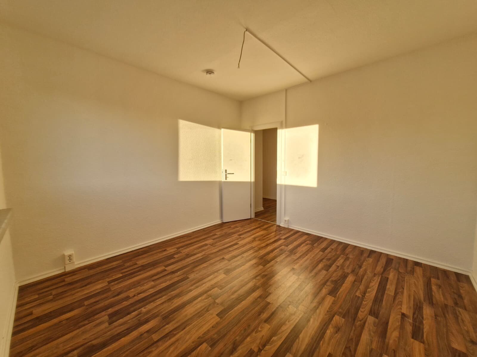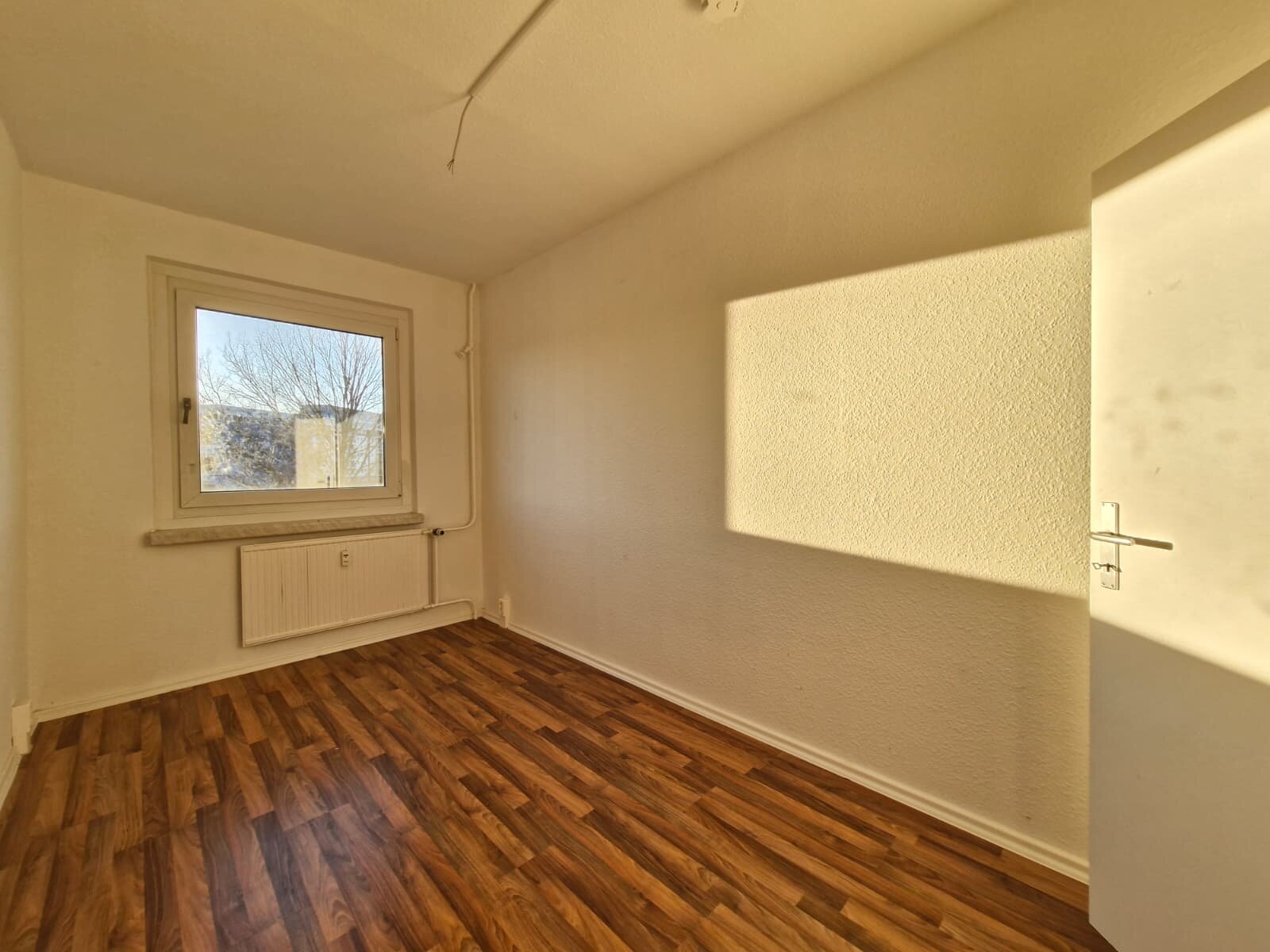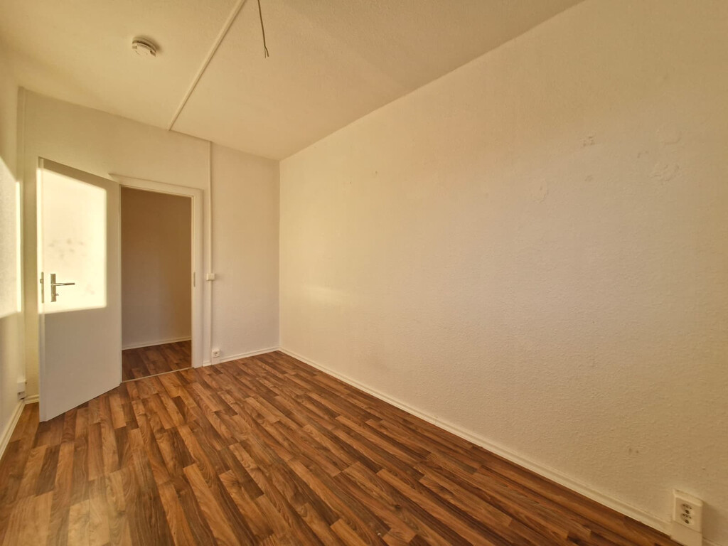- Laminat- Bodenbelag und Raufasertapete in den Wohnräumen
