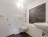 - Anthrazite Boden- und weiße Wandfliesen im Bad