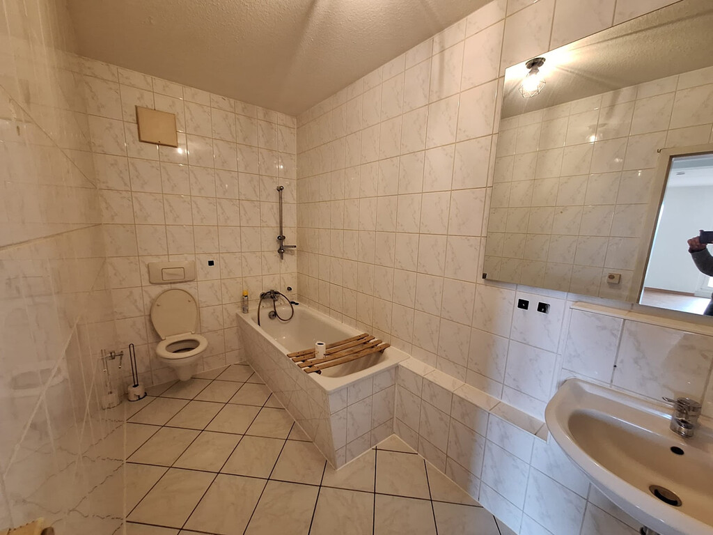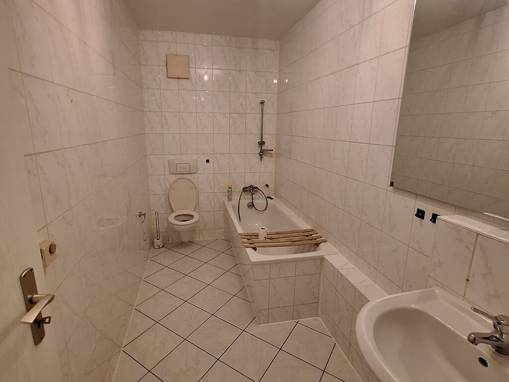 - PVC- Bodenbelag und Raufasertapete in den Wohnräumen