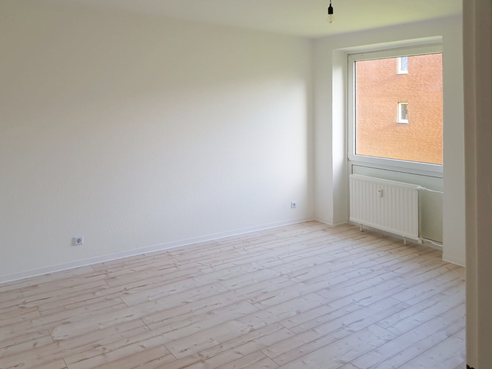- Laminat-Bodenbelag und Raufasertapete in den Wohnräumen