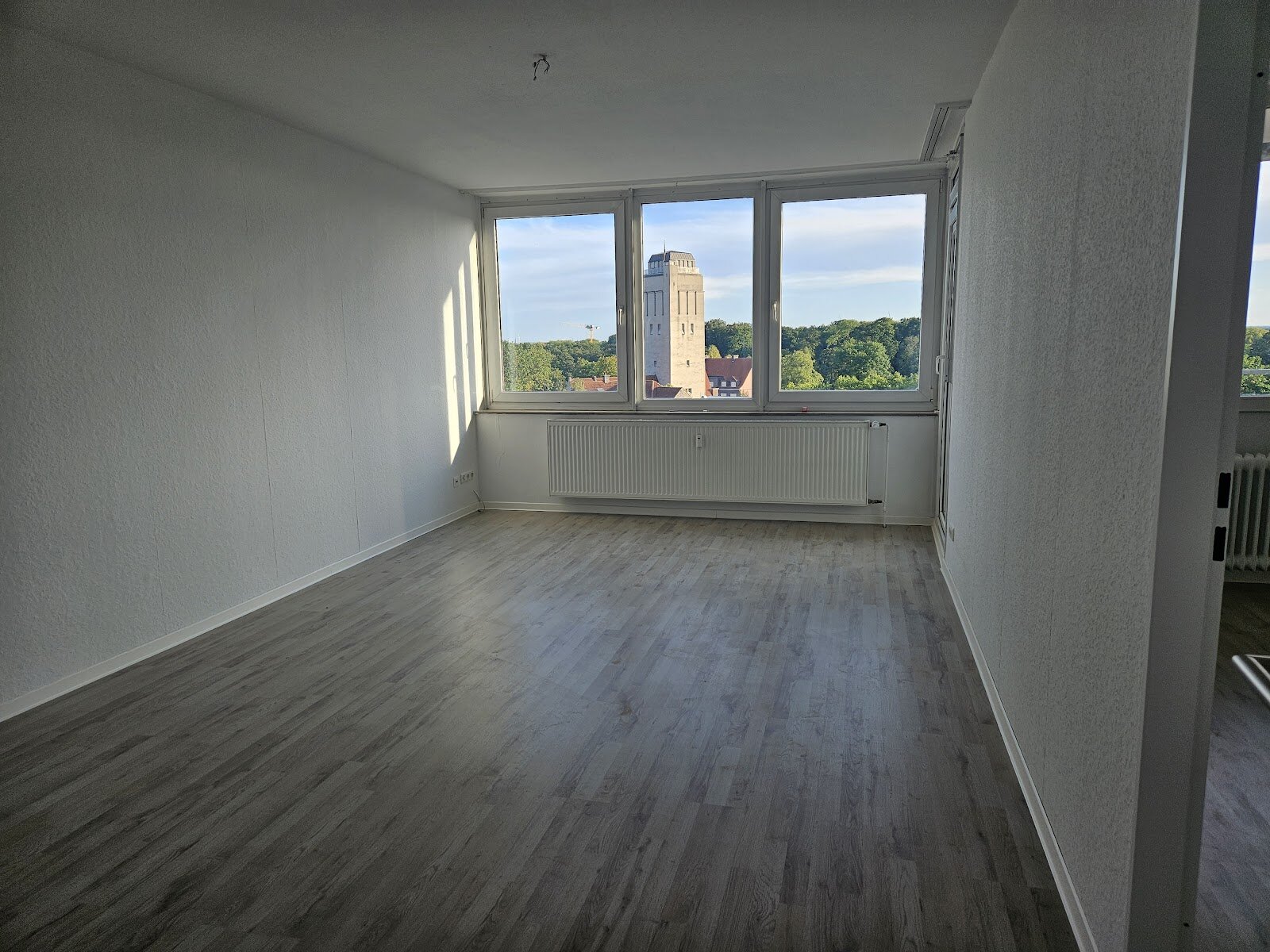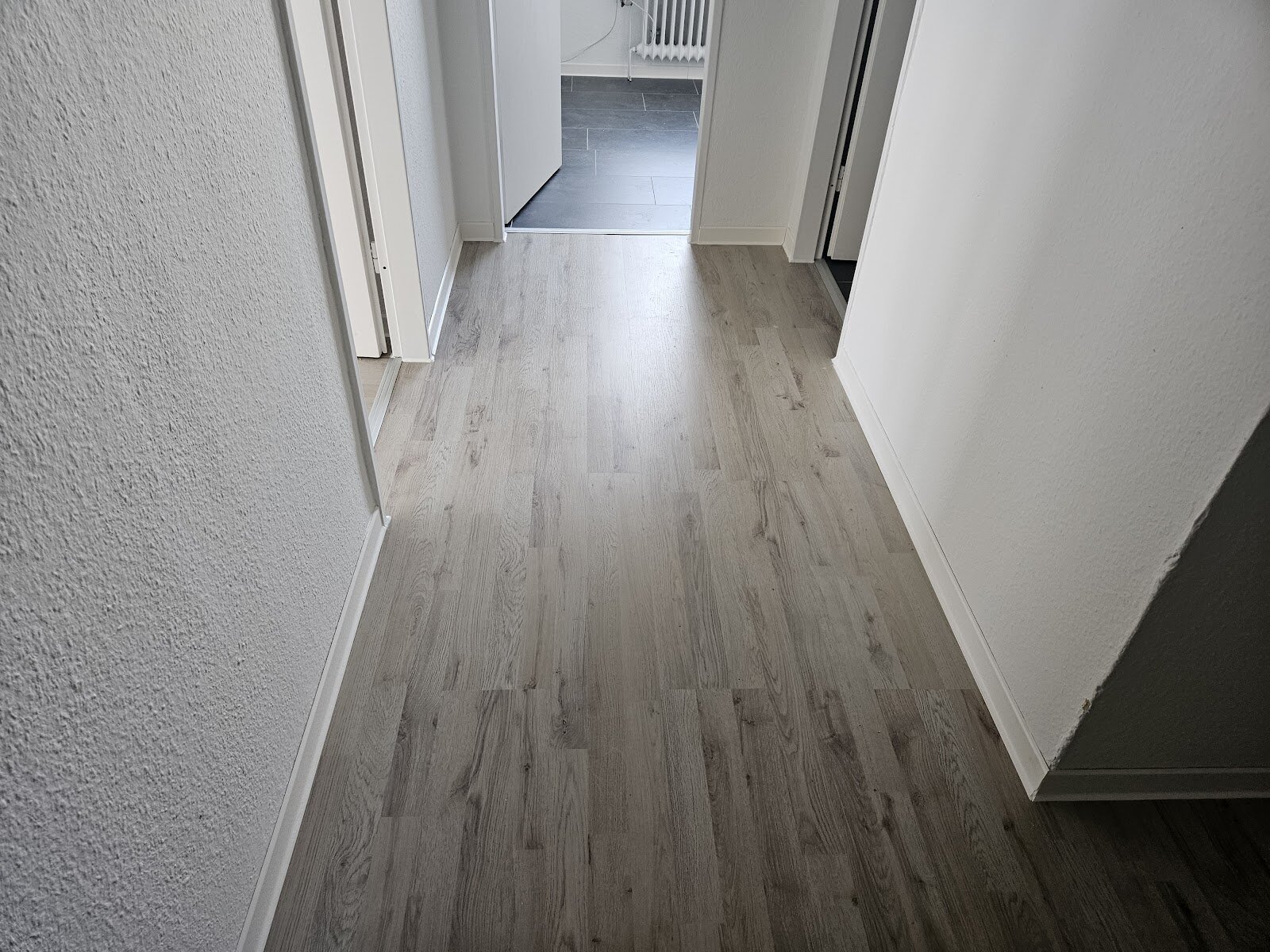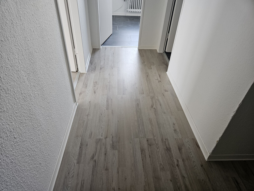 - Laminat- Bodenbelag und Raufasertapete in den Wohnräumen
