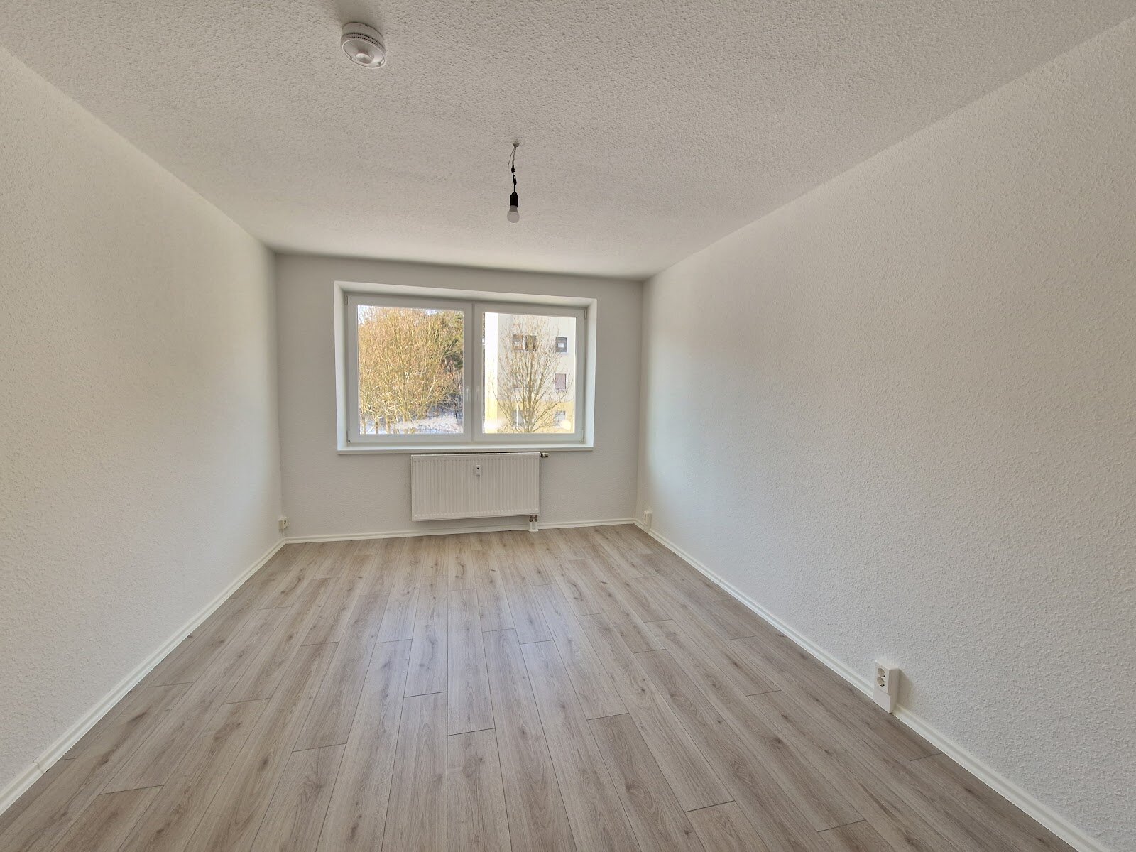 - Laminatboden und Raufasertapete in den Wohnräumen