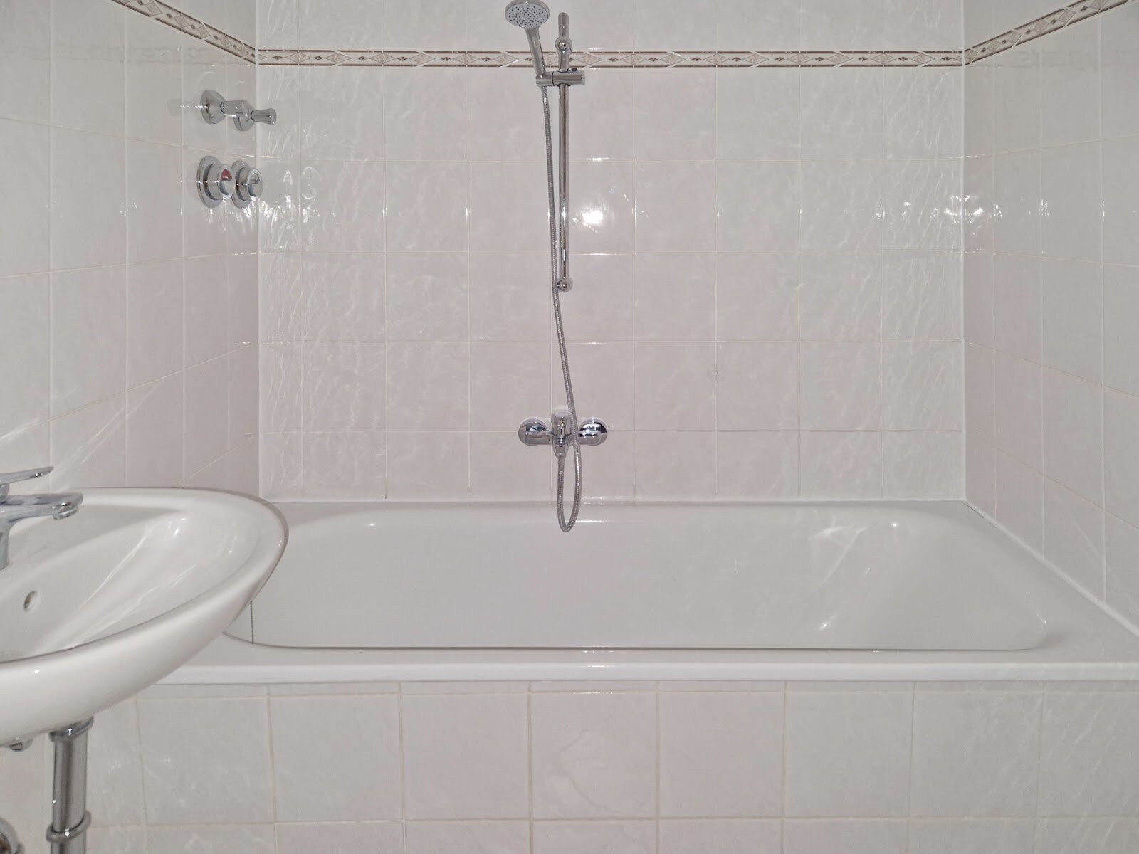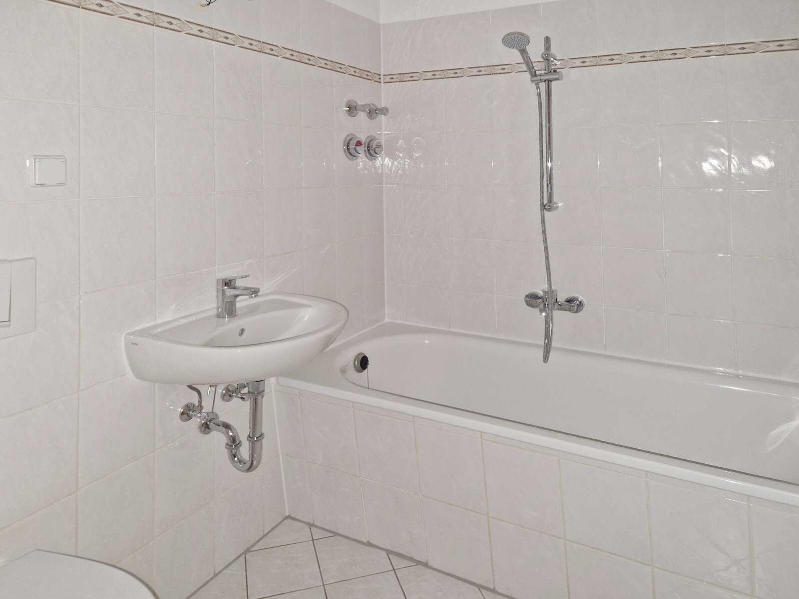 - Helle Boden- und Wandfliesen im Bad