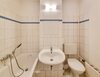 - Weiße Boden- und weiße Wandfliesen im Bad