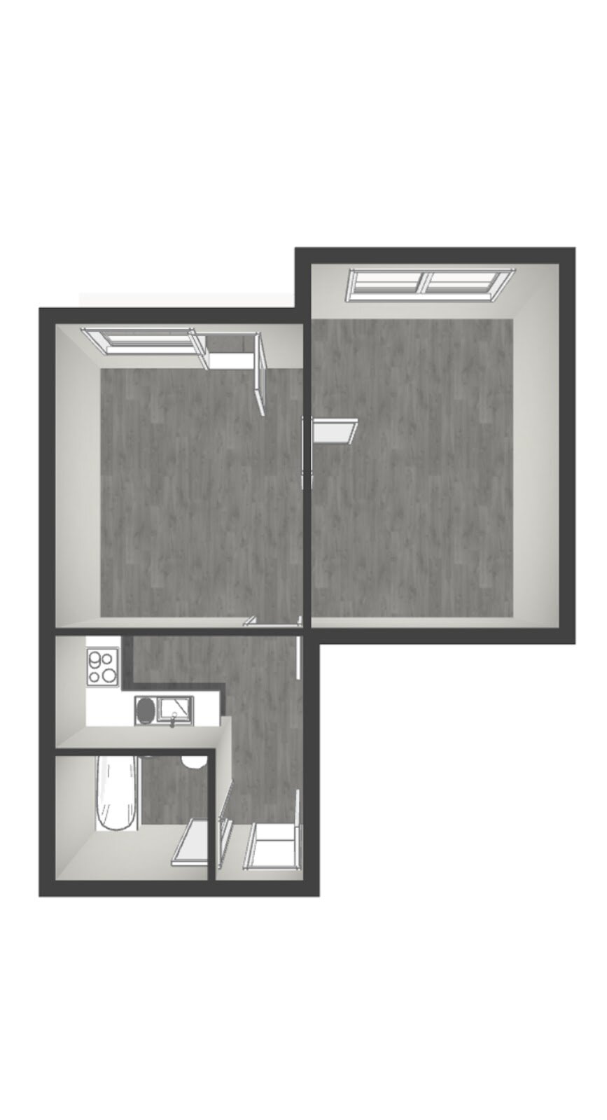 Die 2-Zimmer-Wohnung verteilt sich auf ca. 43 m².