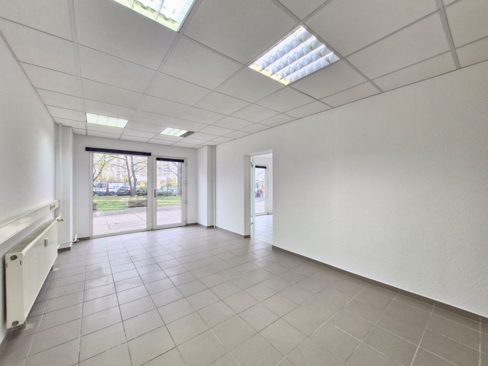 Straßenseitig sorgen zwei große Schaufenster für eine helle und freundliche Ausleuchtung der Fläche und bieten zugleich gute Präsentationsmöglichkeiten.