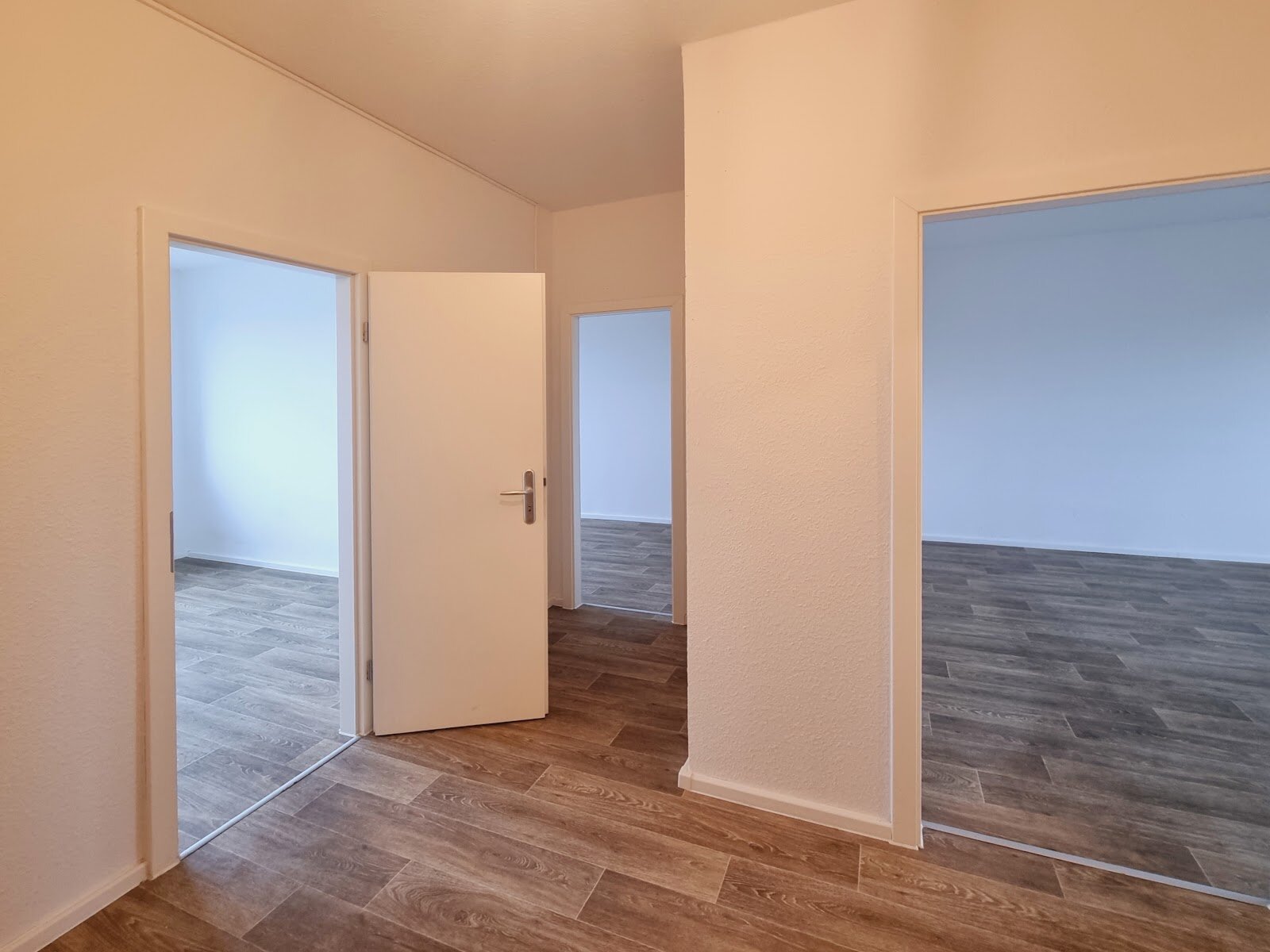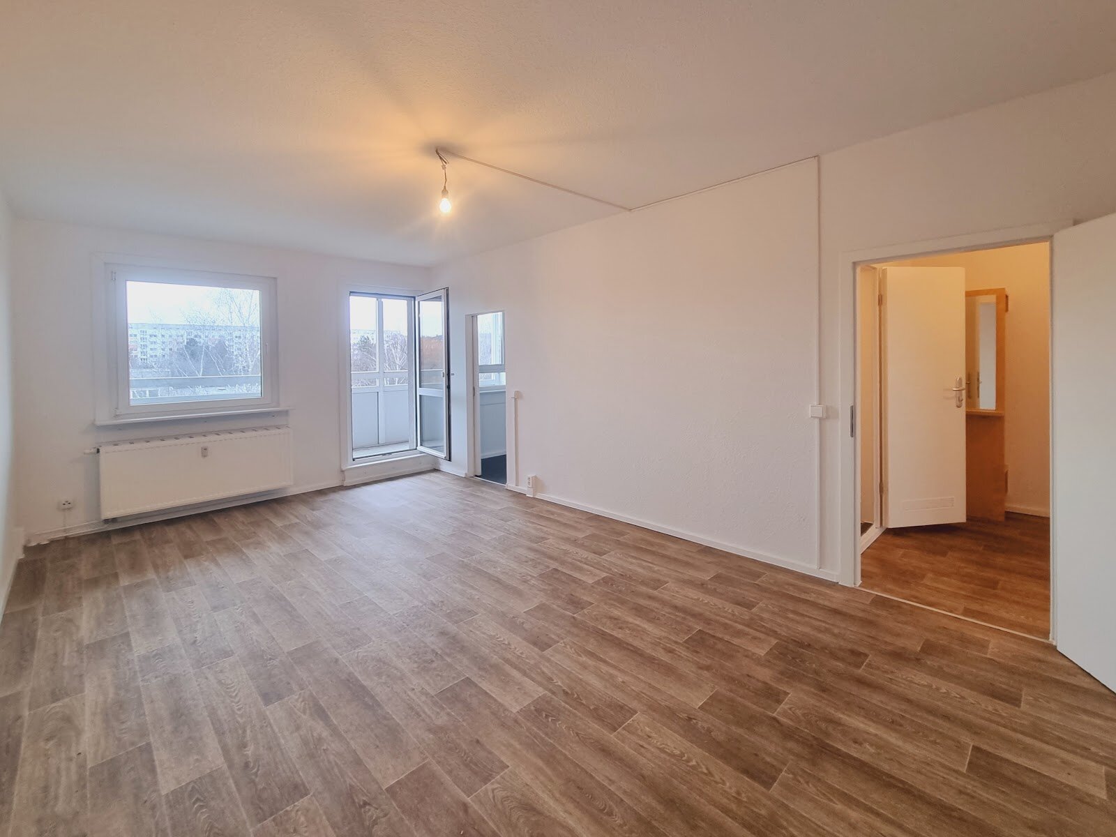 - PVC- Bodenbelag und Raufasertapete in den Wohnräumen
