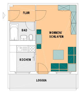 Die 1-Zimmer-Wohnung verteilt sich auf ca. 37 m².