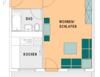 - PVC- Bodenbelag und Raufasertapete in den Wohnräumen