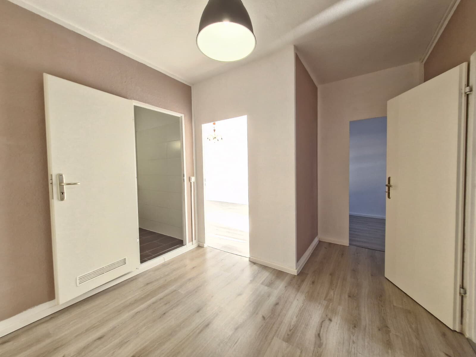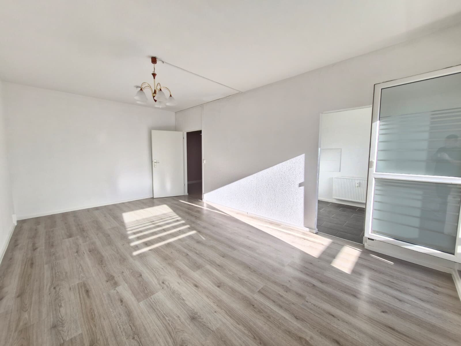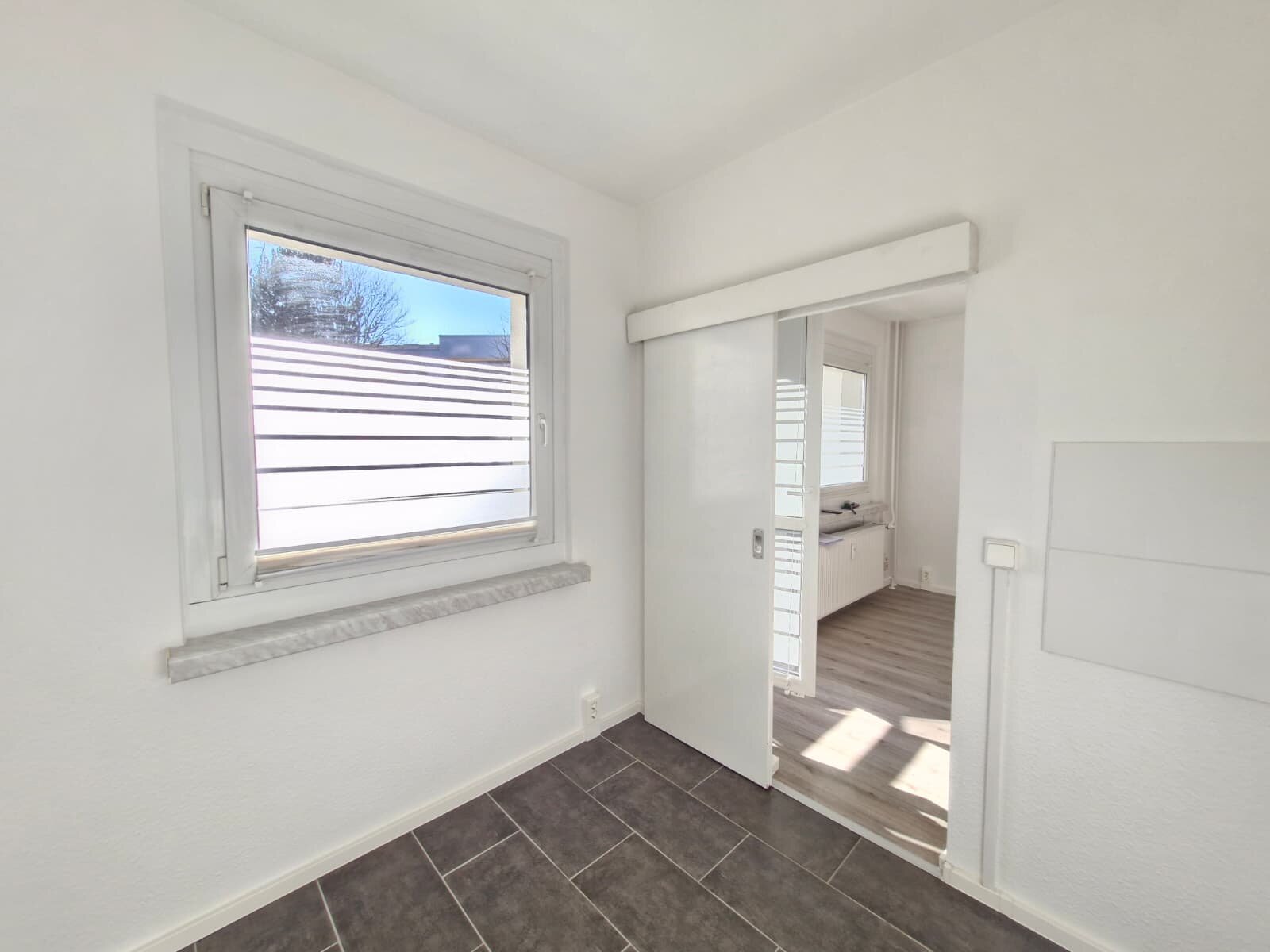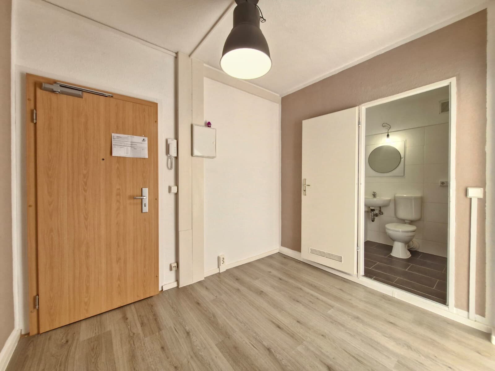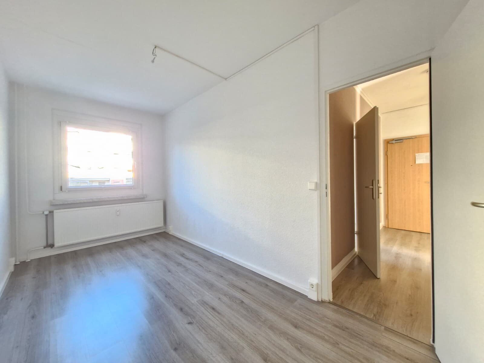 - Laminat- Bodenbelag und Raufasertapete in den Wohnräumen