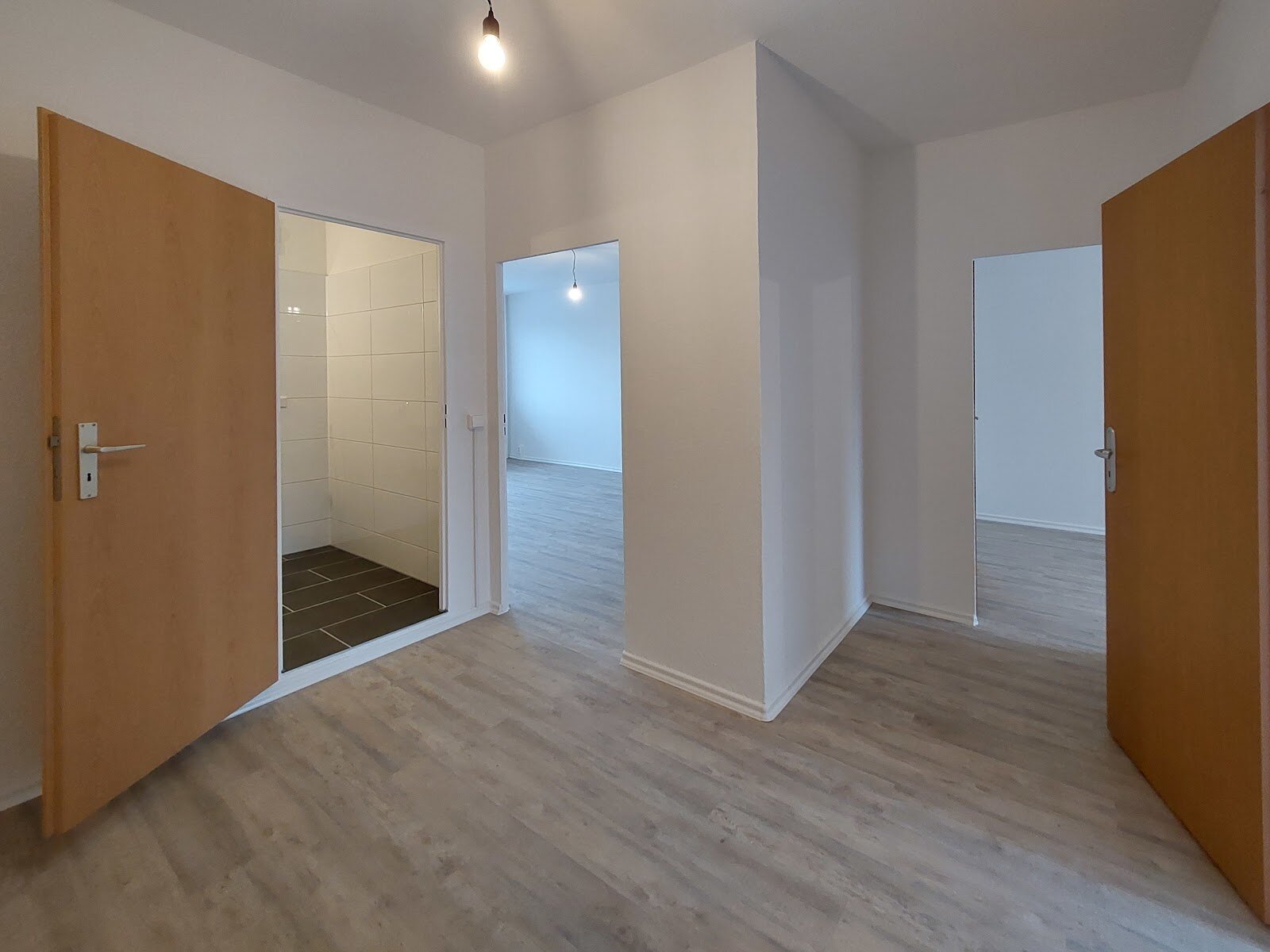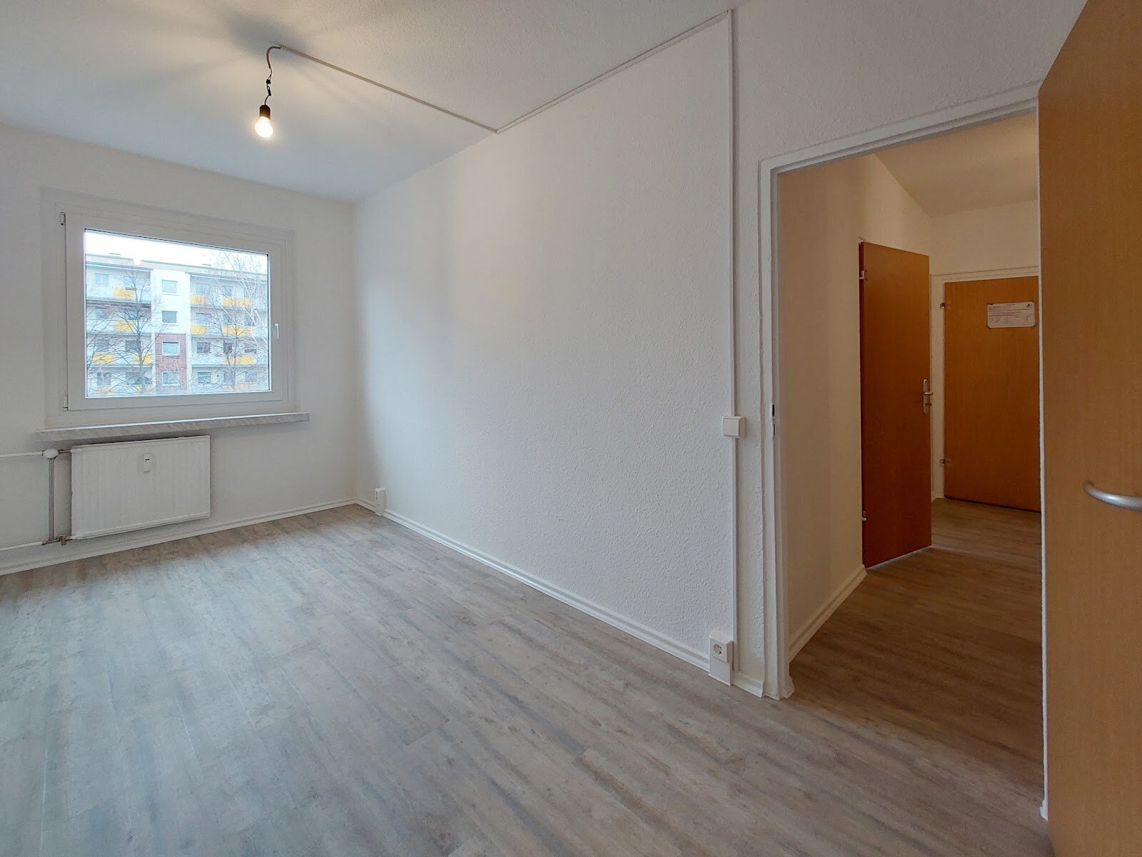 - PVC- Bodenbelag und Raufasertapete in den Wohnräumen