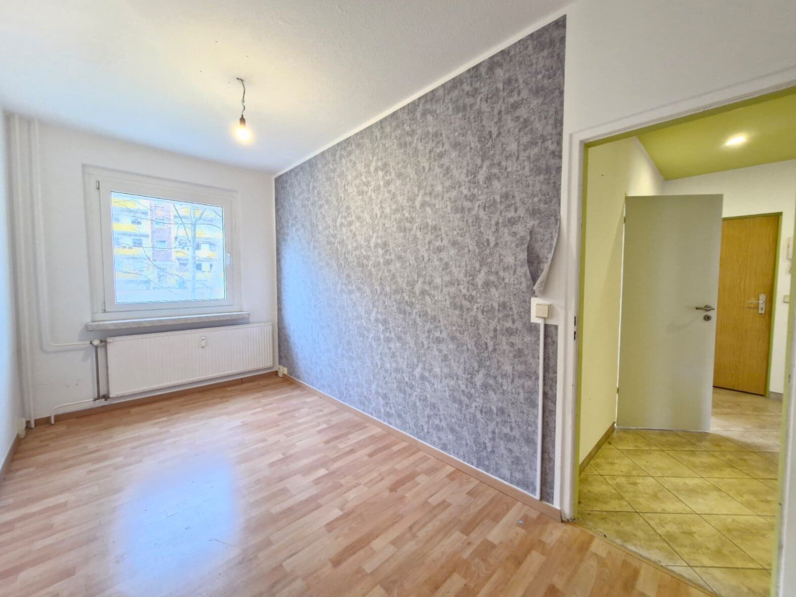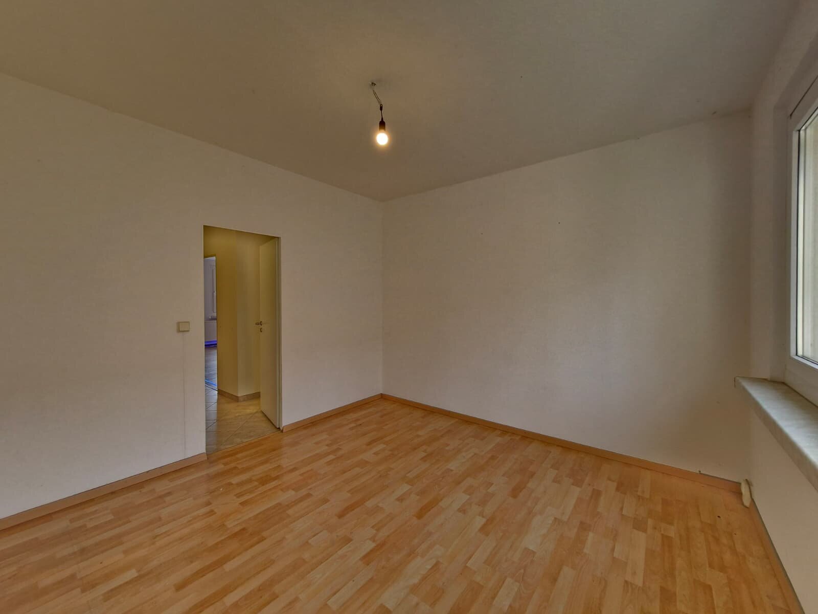 - Laminat- Bodenbelag und Raufasertapete in den Wohnräumen