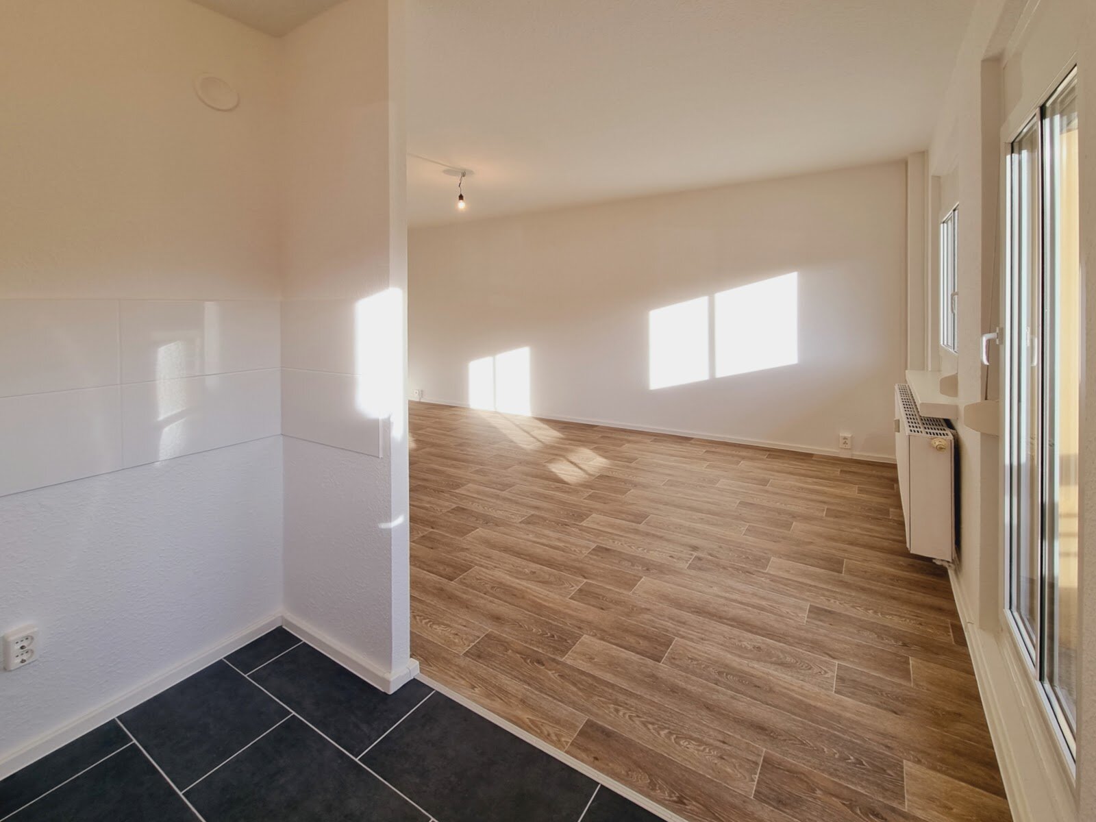 - PVC- Bodenbelag und Raufasertapete in den Wohnräumen