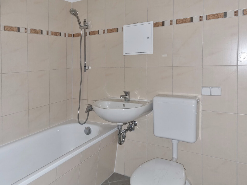 - PVC- Bodenbelag und Raufasertapete in den Wohnräumen