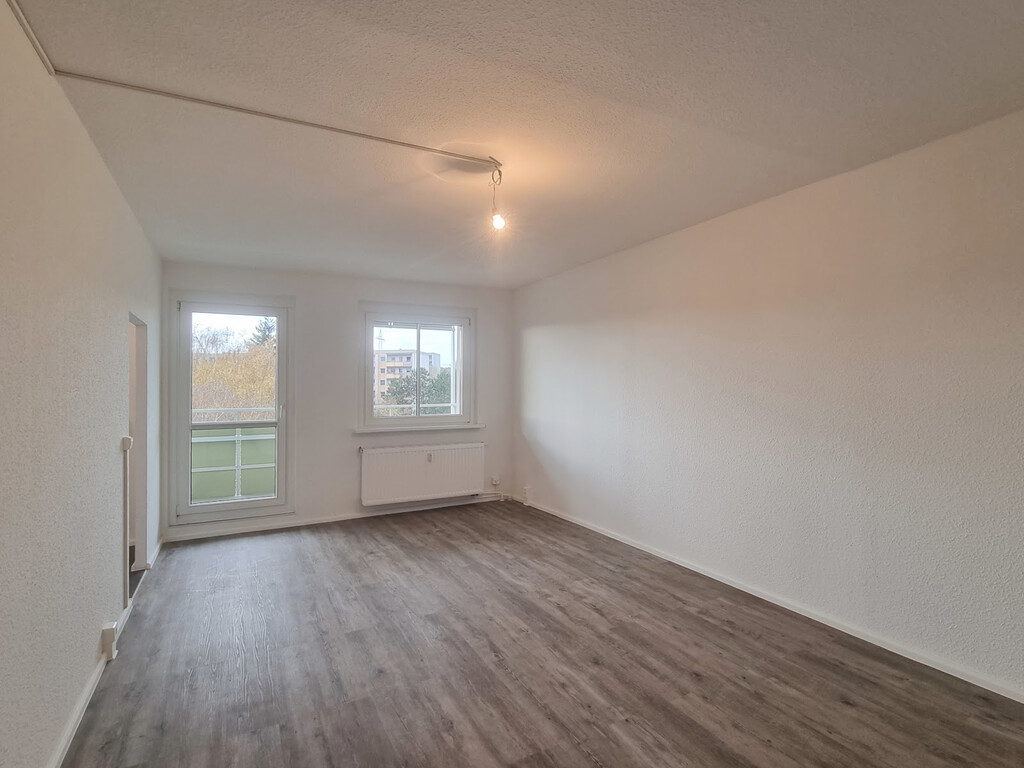 - Vinyl- Bodenbelag und Raufasertapete in den Wohnräumen