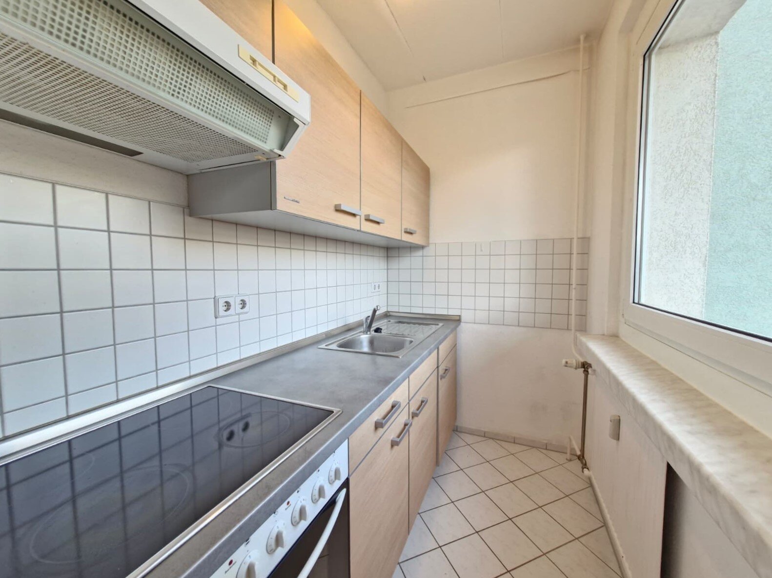 - Helle Boden- und helle Wandfliesen in der Küche
