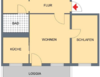 - PVC- Bodenbelag und Raufasertapete in den Wohnräumen