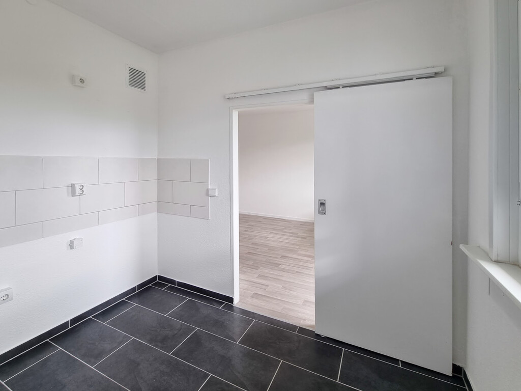 - PVC- Bodenbelag und Raufasertapete in den Wohnräumen