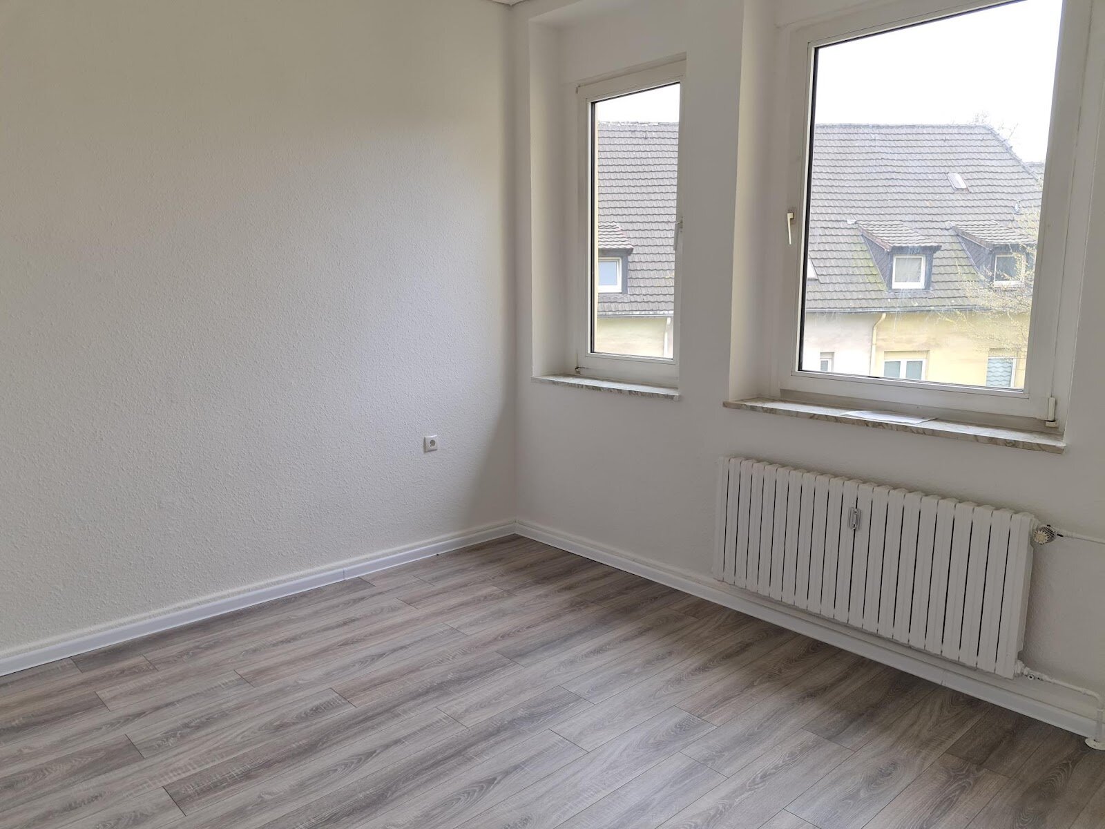 - Laminat/PVC- Bodenbelag und Raufasertapete in den Wohnräumen