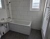 - Anthrazite Boden- und weiße Wandfliesen im Bad