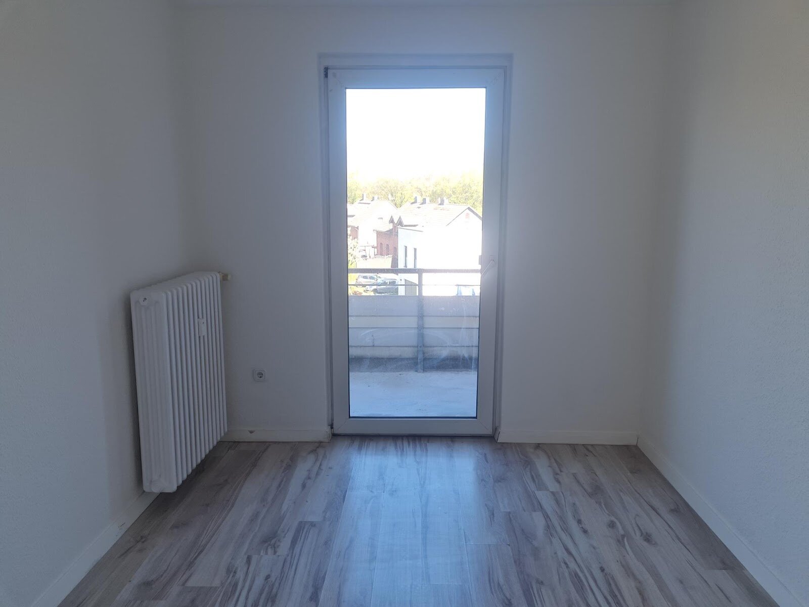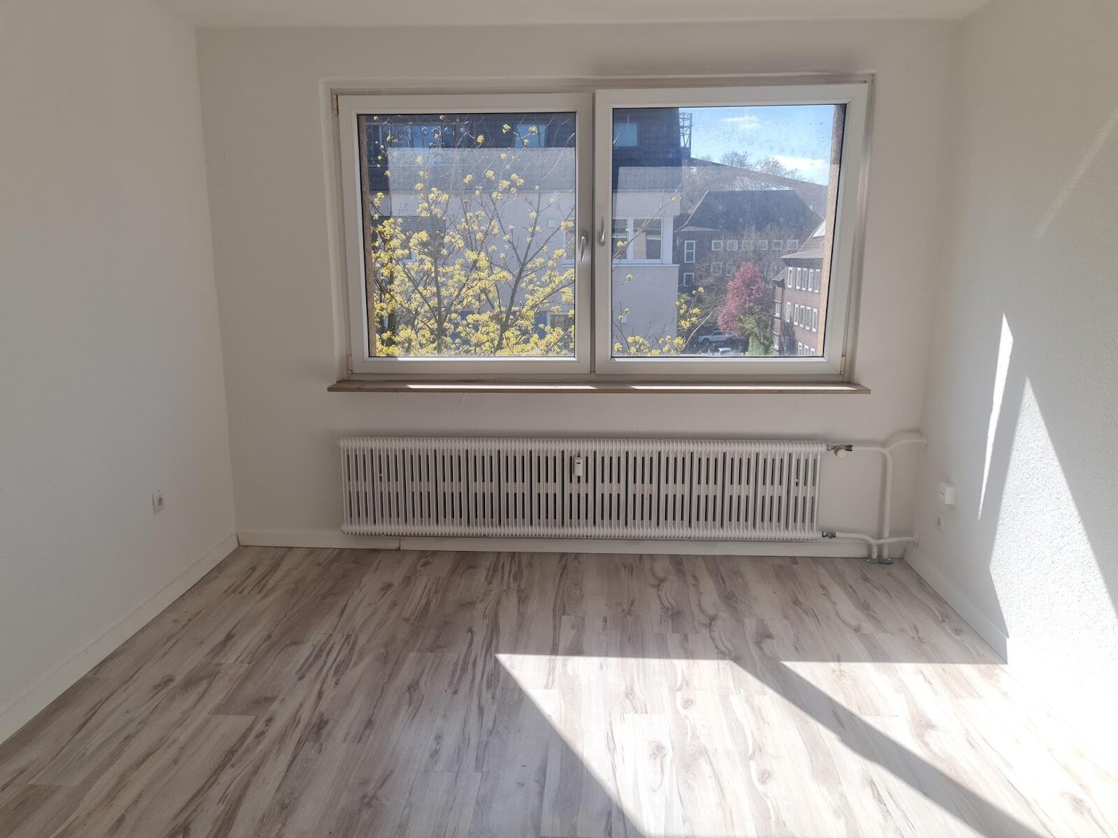 - Laminat- Bodenbelag und Raufasertapete in den Wohnräumen