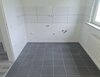 - Anthrazite Boden- und weiße Wandfliesen in der Küche