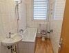 - Anthrazite Boden- und weiße Wandfliesen im Bad